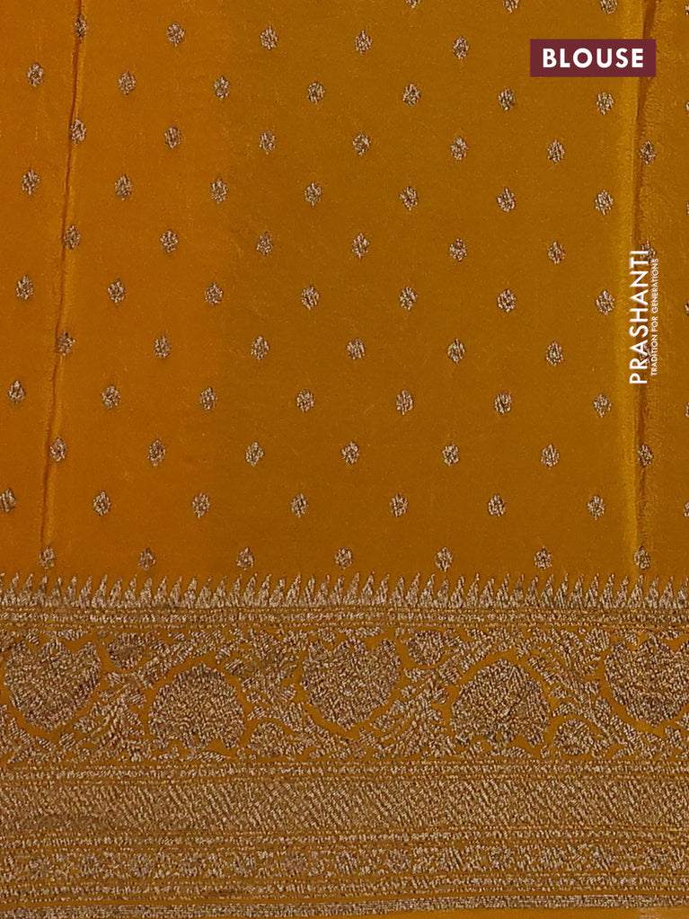 Banarasi crepe saree mustard yellow with allover thread & zari weaves and woven border