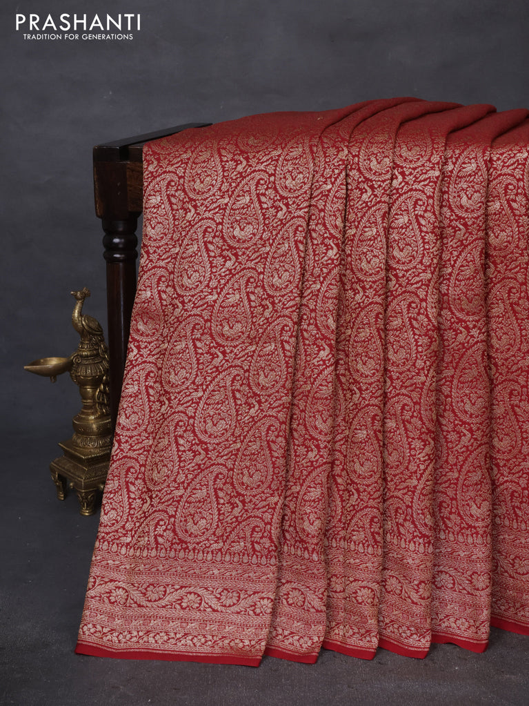 Banarasi crepe saree maroon with allover thread & zari weaves and woven border