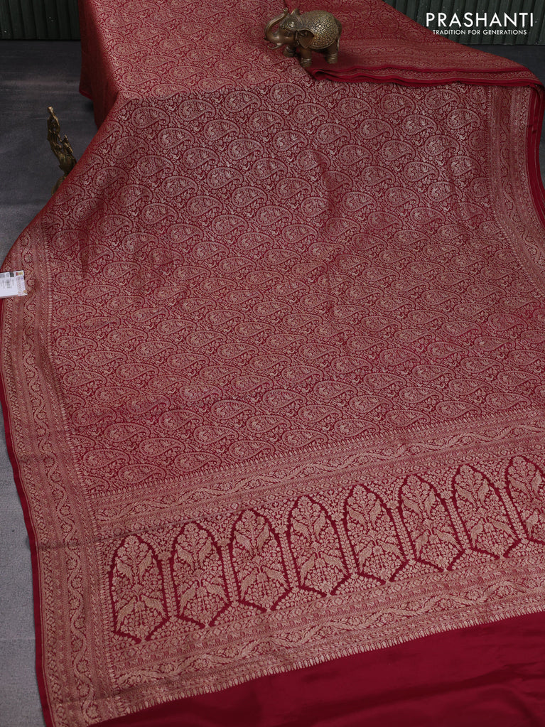 Banarasi crepe saree maroon with allover thread & zari woven brocade weaves and woven border