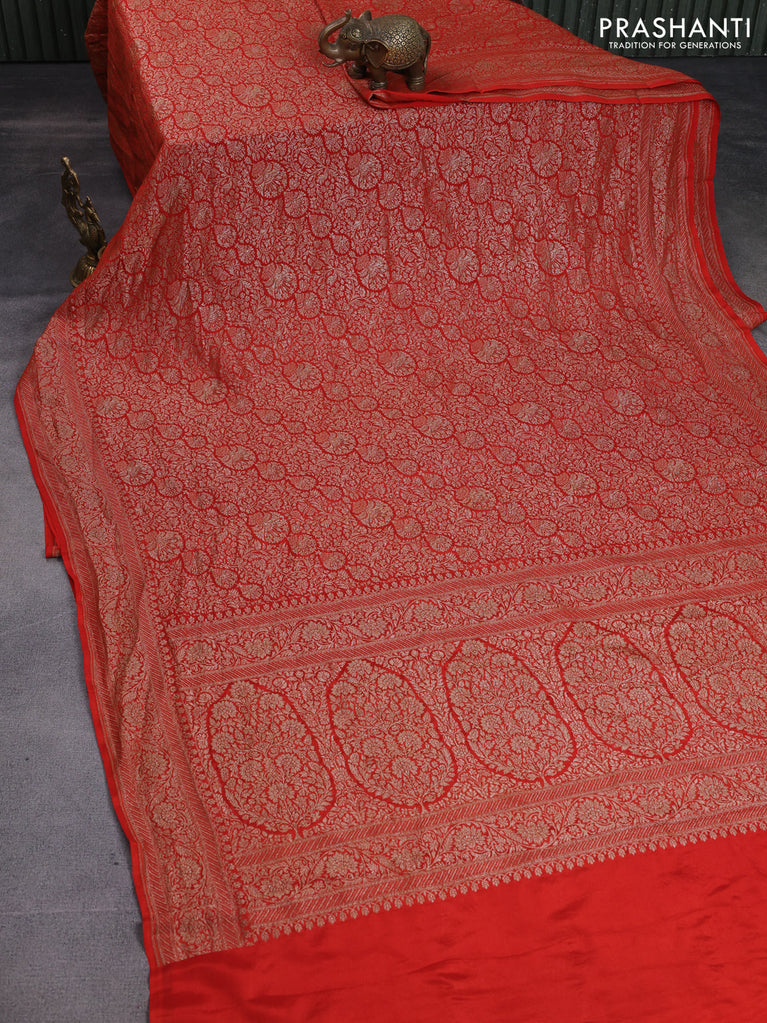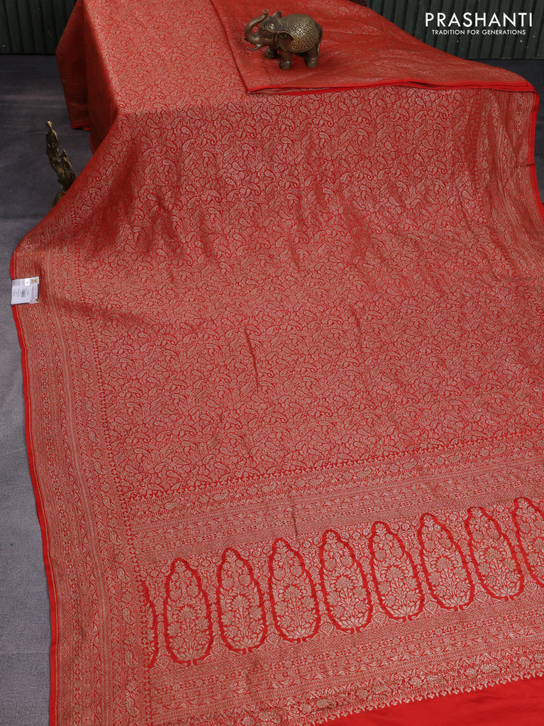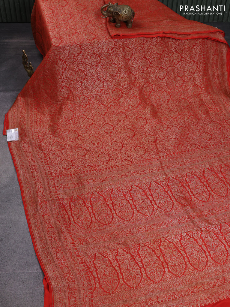 Banarasi crepe saree orange with allover thread & zari woven brocade weaves and woven border
