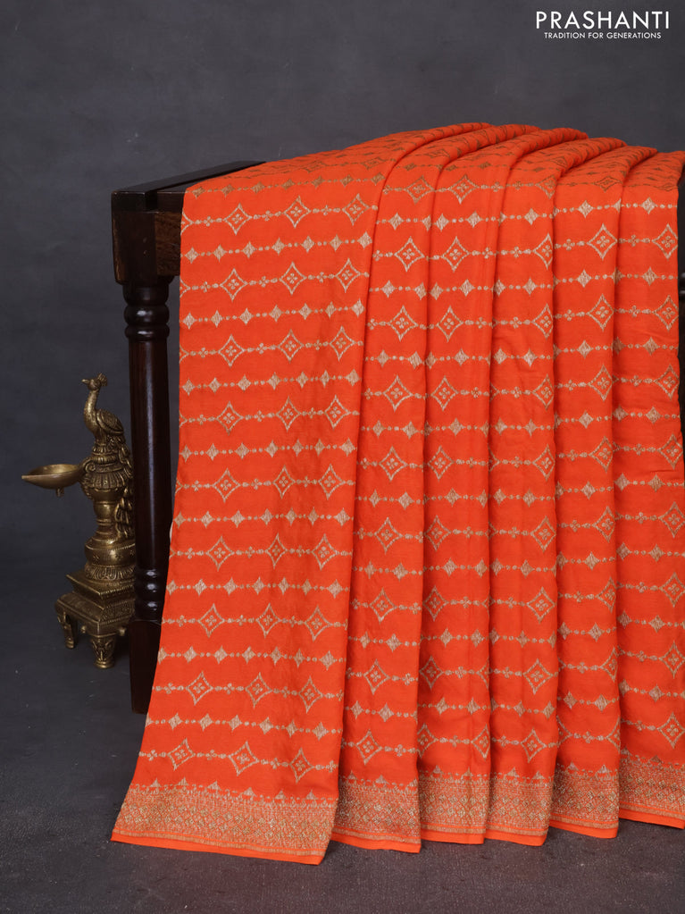 Banarasi crepe saree orange with allover thread & zari geometric weaves and woven border
