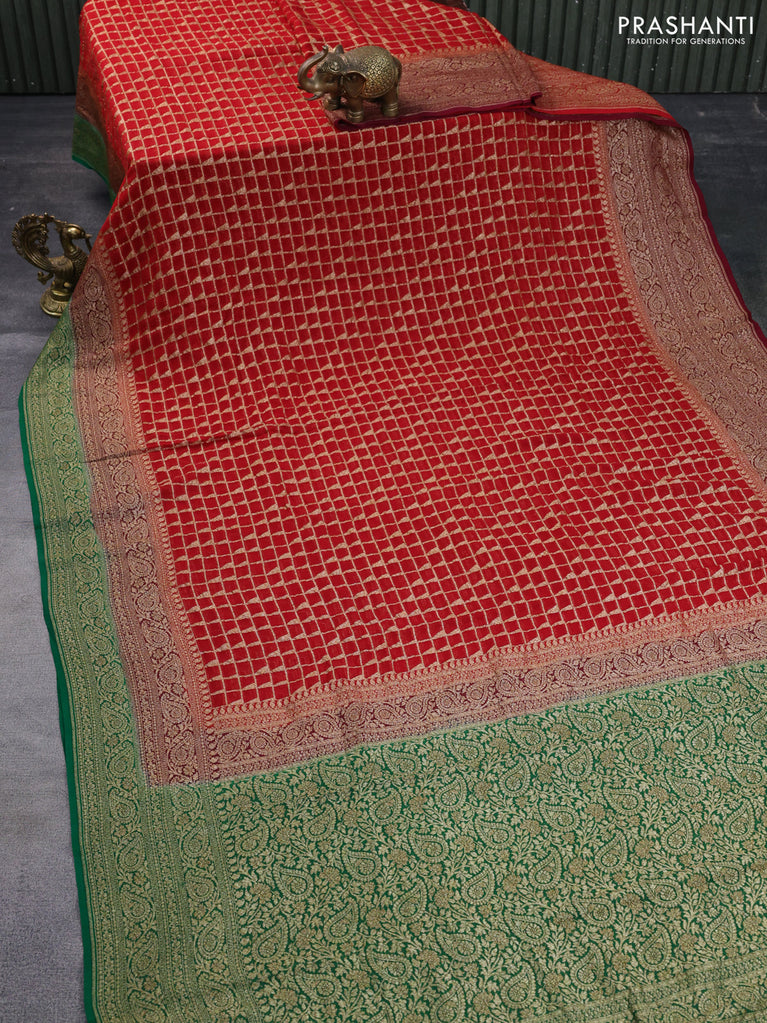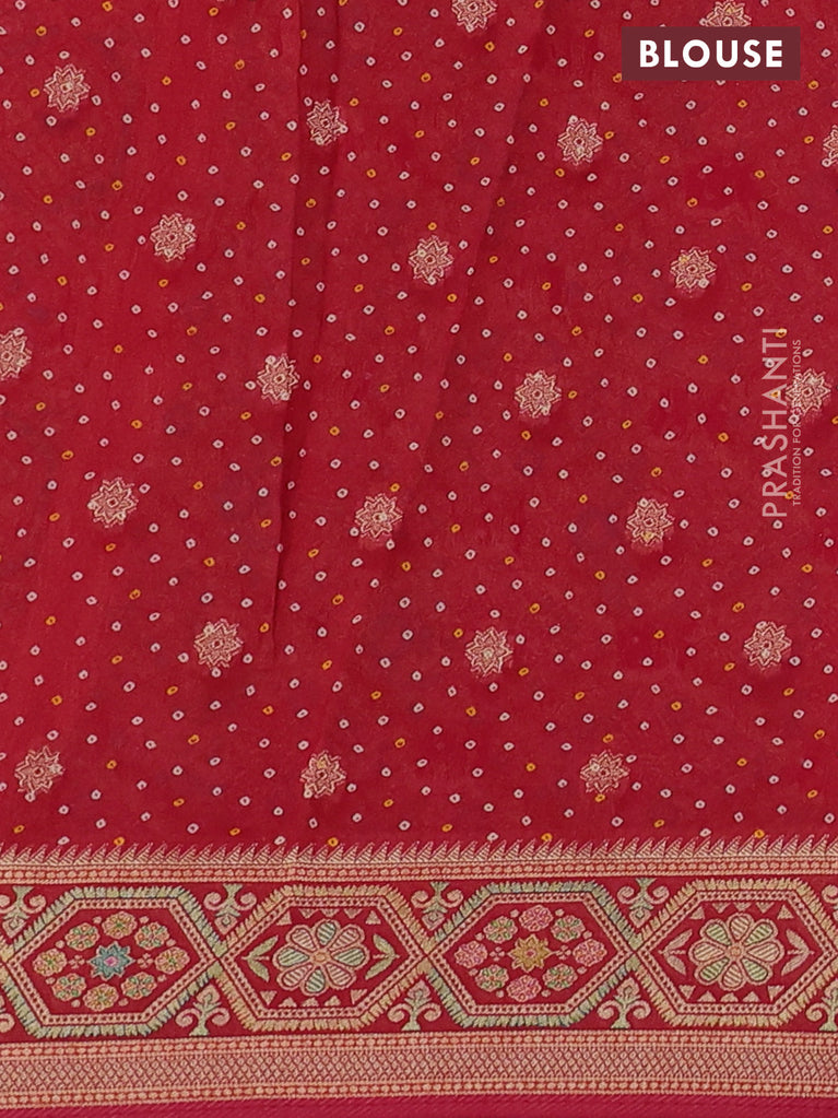 Banarasi georgette saree red with bandhani prints & mina weaves and woven border