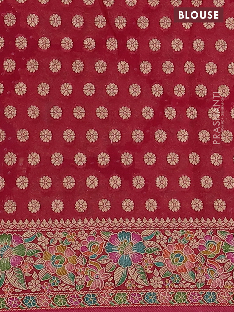 Banarasi georgette saree red and maroon green with allover thread weaves and woven border
