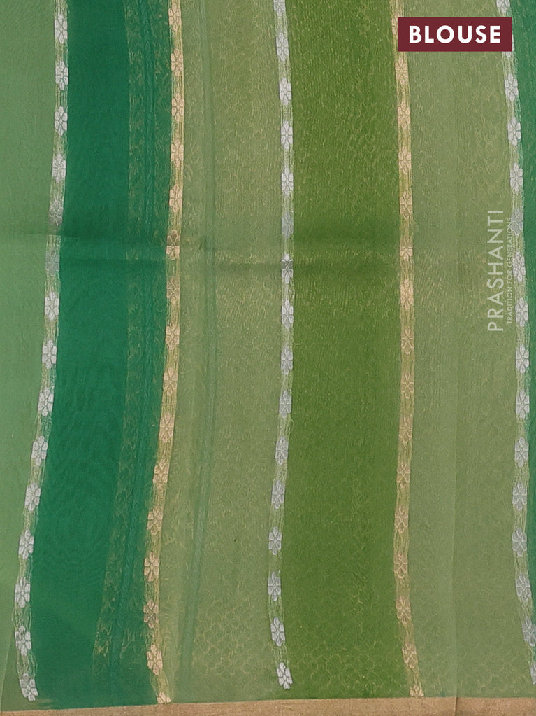 Banarasi organza silk saree green shade with allover silver & gold zari weaves and zari woven piping boder