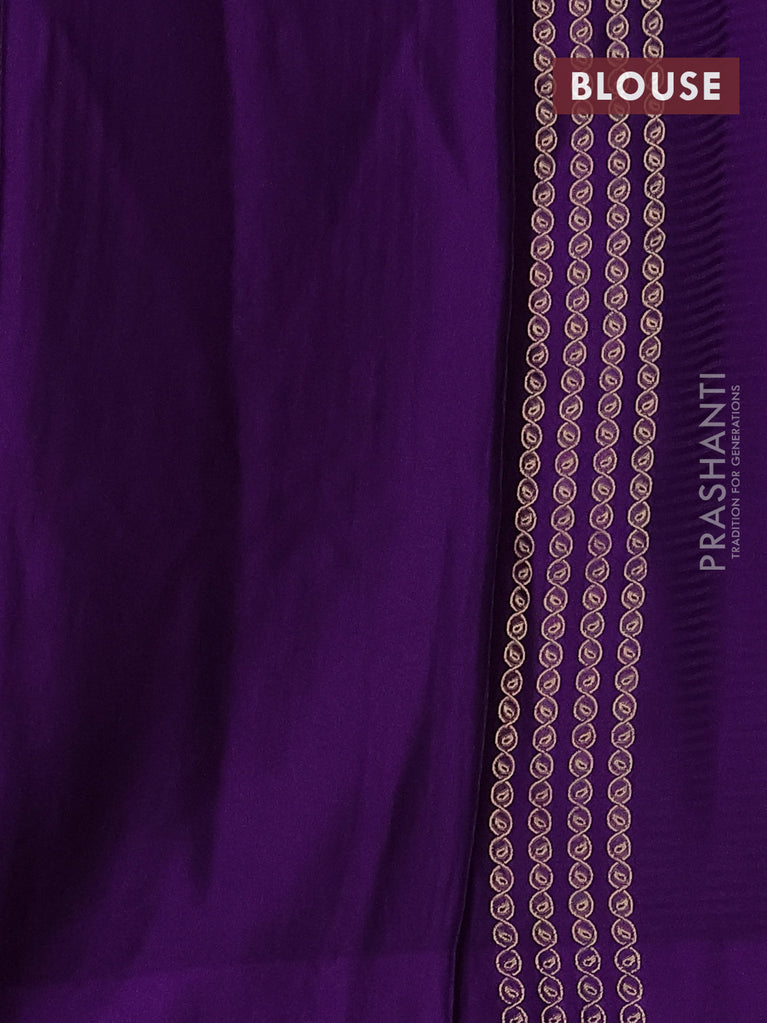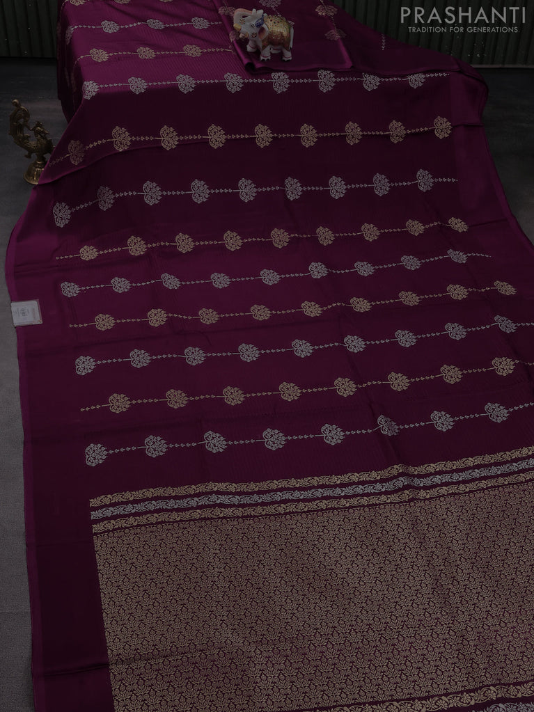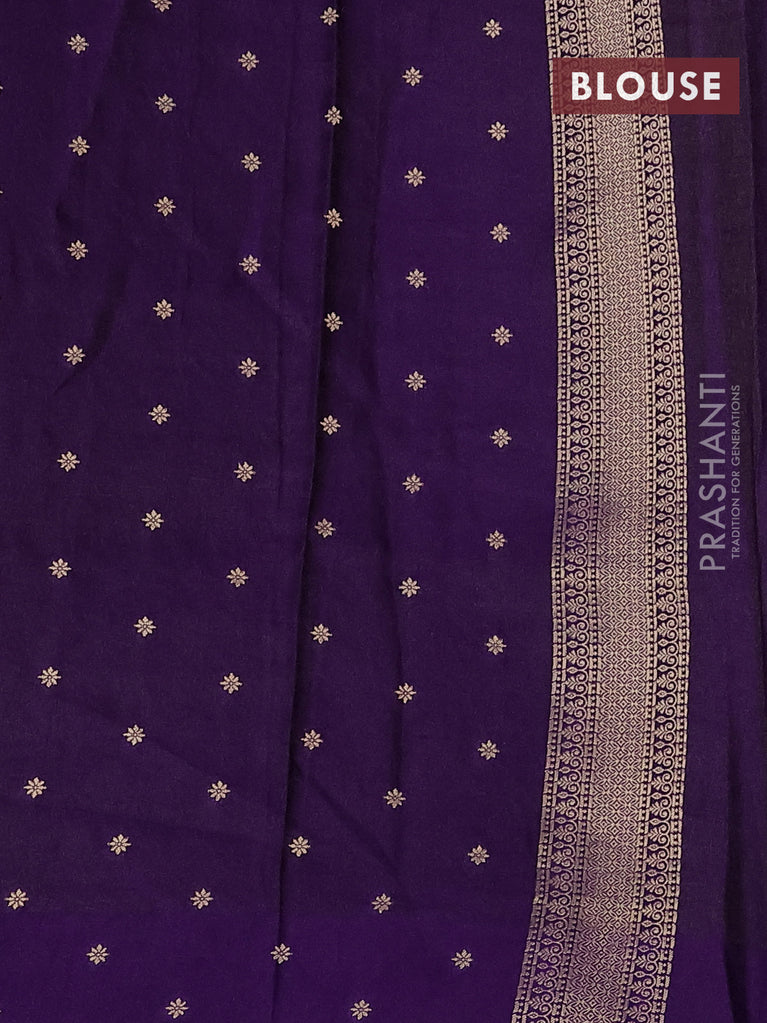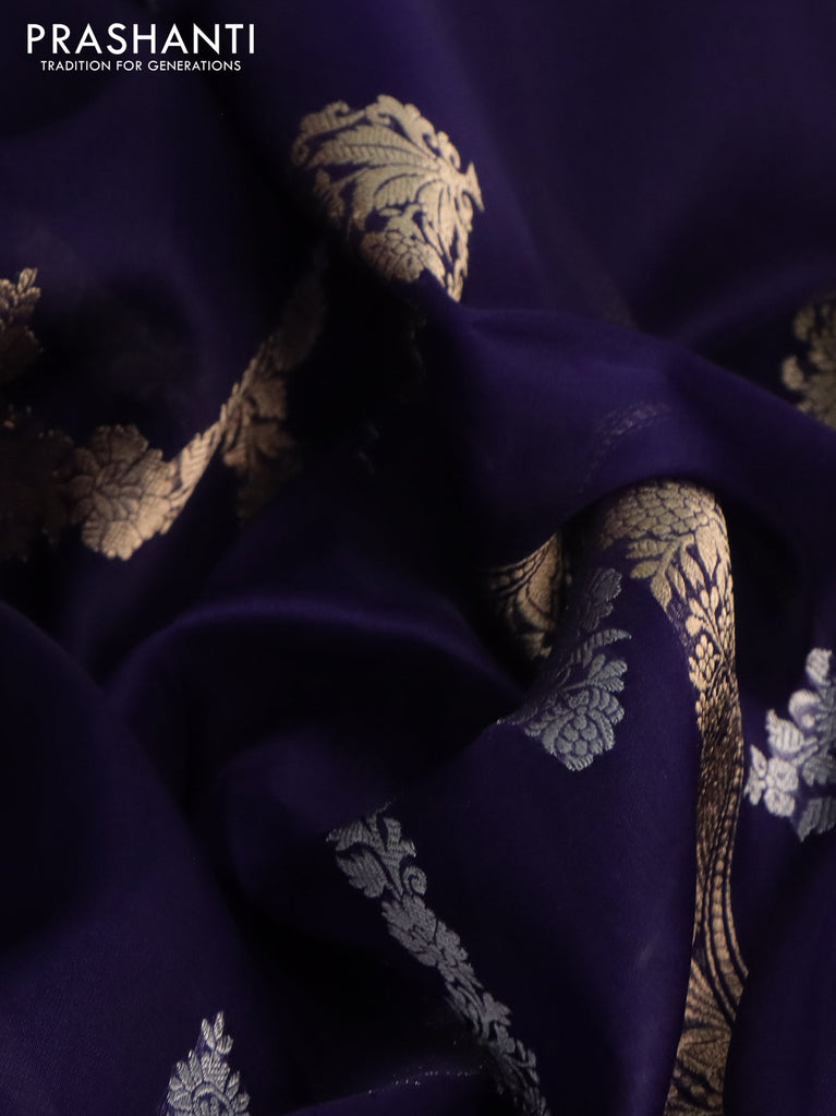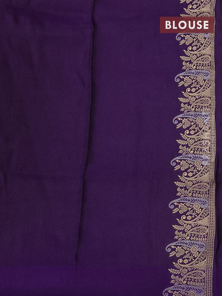 Banarasi organza silk saree deep purple with silver & gold zari woven buttas and satin border