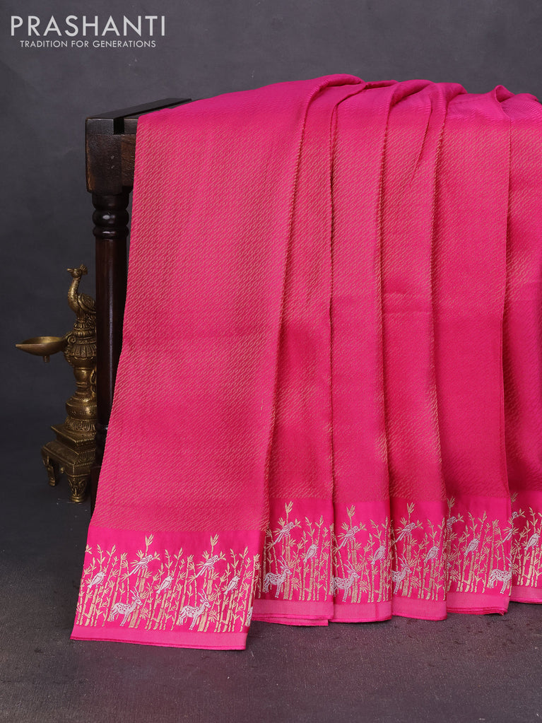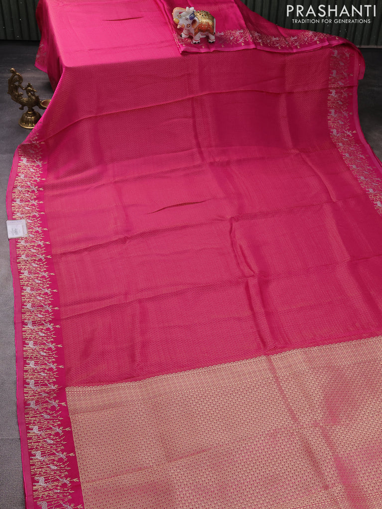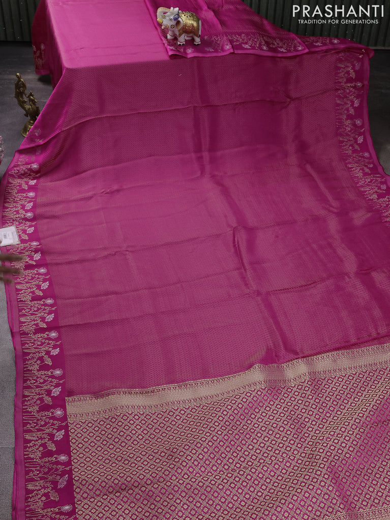 Banarasi organza silk saree dark pink and pastel grey with floral zari buttas and zari woven border