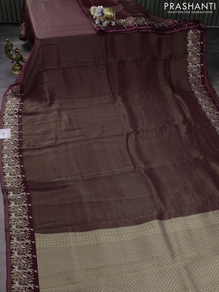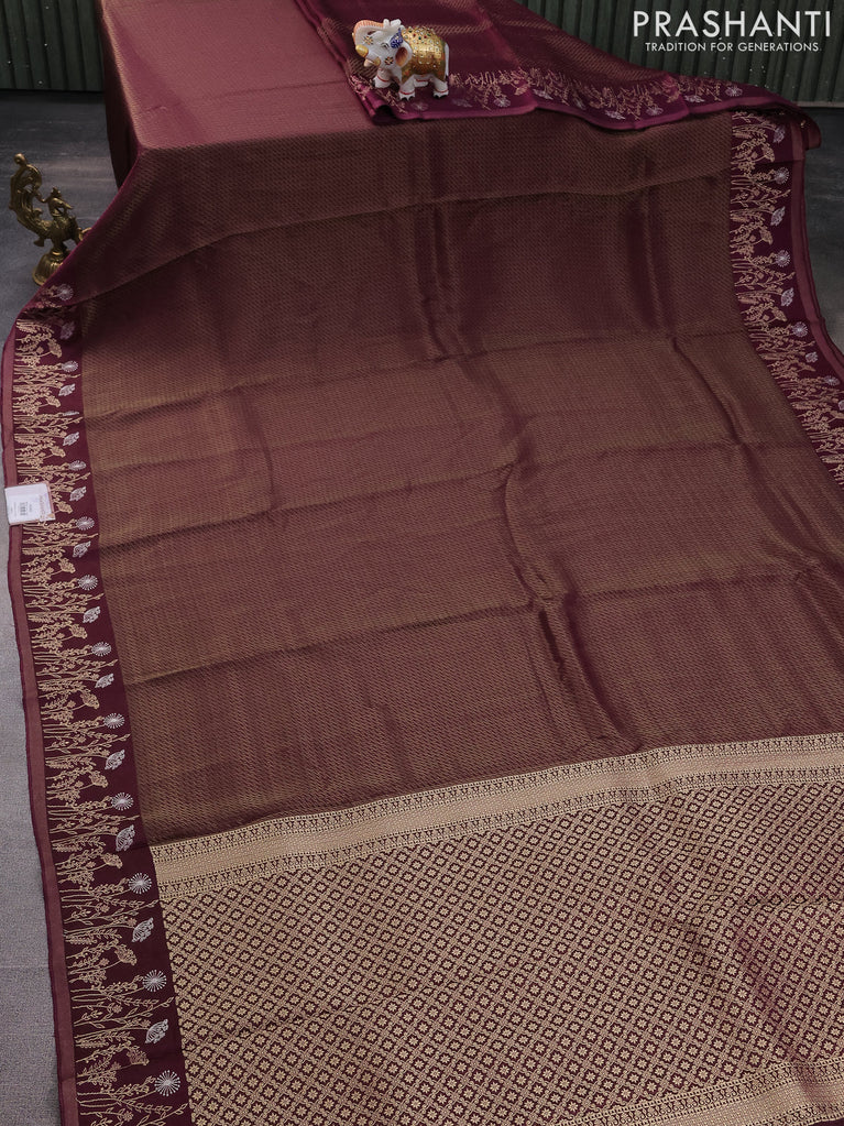 Banarasi mushru silk saree wine shade with allover zari weaves and zari woven border