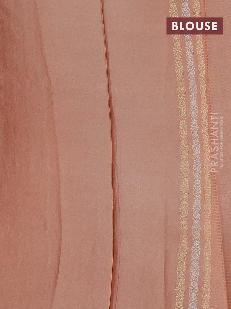 Banarasi mushru silk saree sandal with allover stripes pattern & zari weaves and satin border