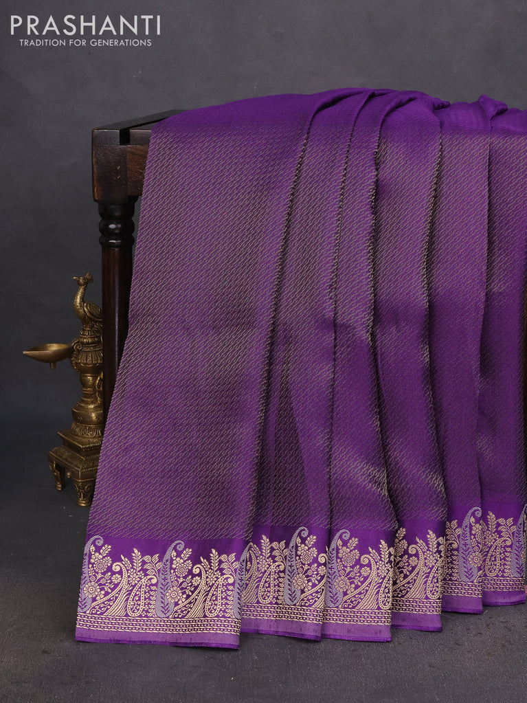 Banarasi mushru silk saree violet with allover zari weaves and zari woven border