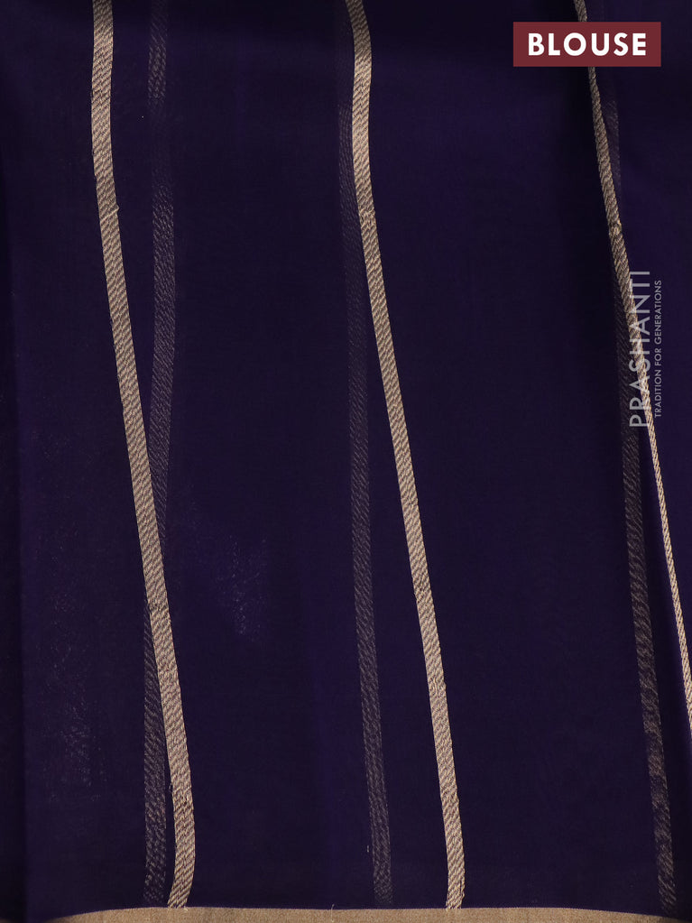 Banarasi organza silk saree dark blue with silver & gold zari weaves and zari woven piping border