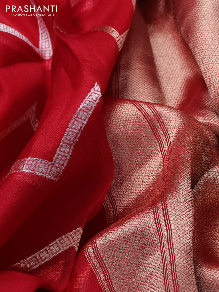 Banarasi organza silk saree red with silver & gold zig zag weaves and zari woven border