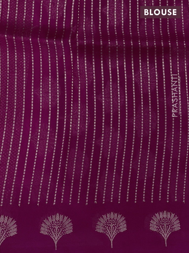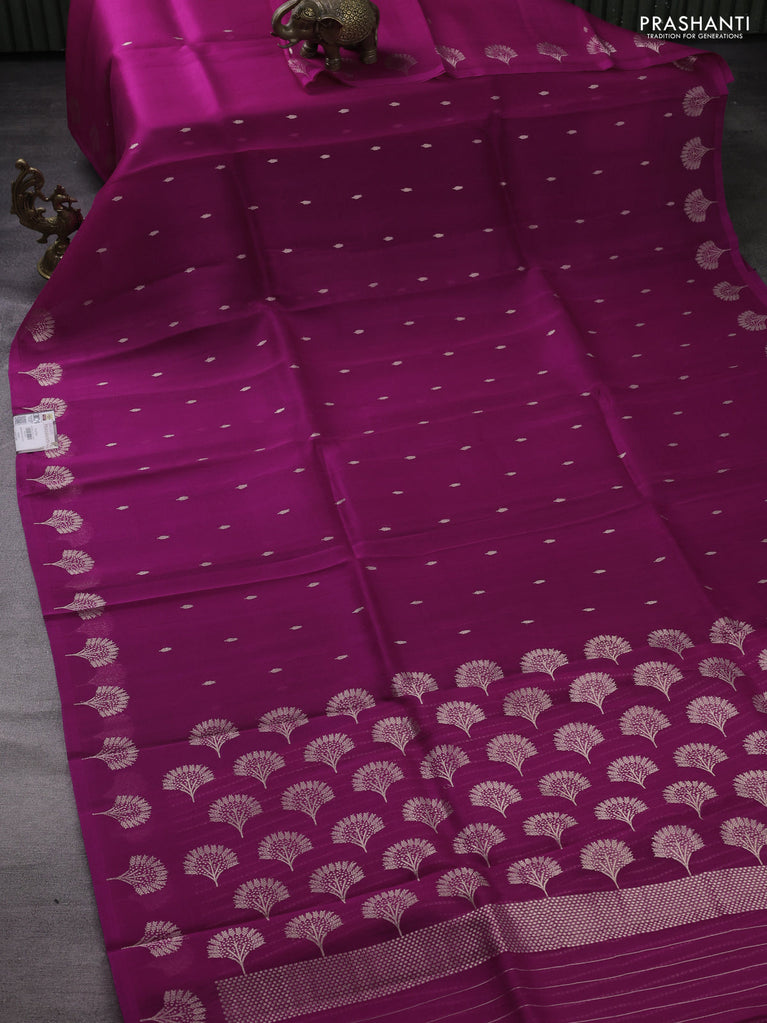 Banarasi organza silk saree magenta pink with silver & gold zari weaves and zari woven piping border