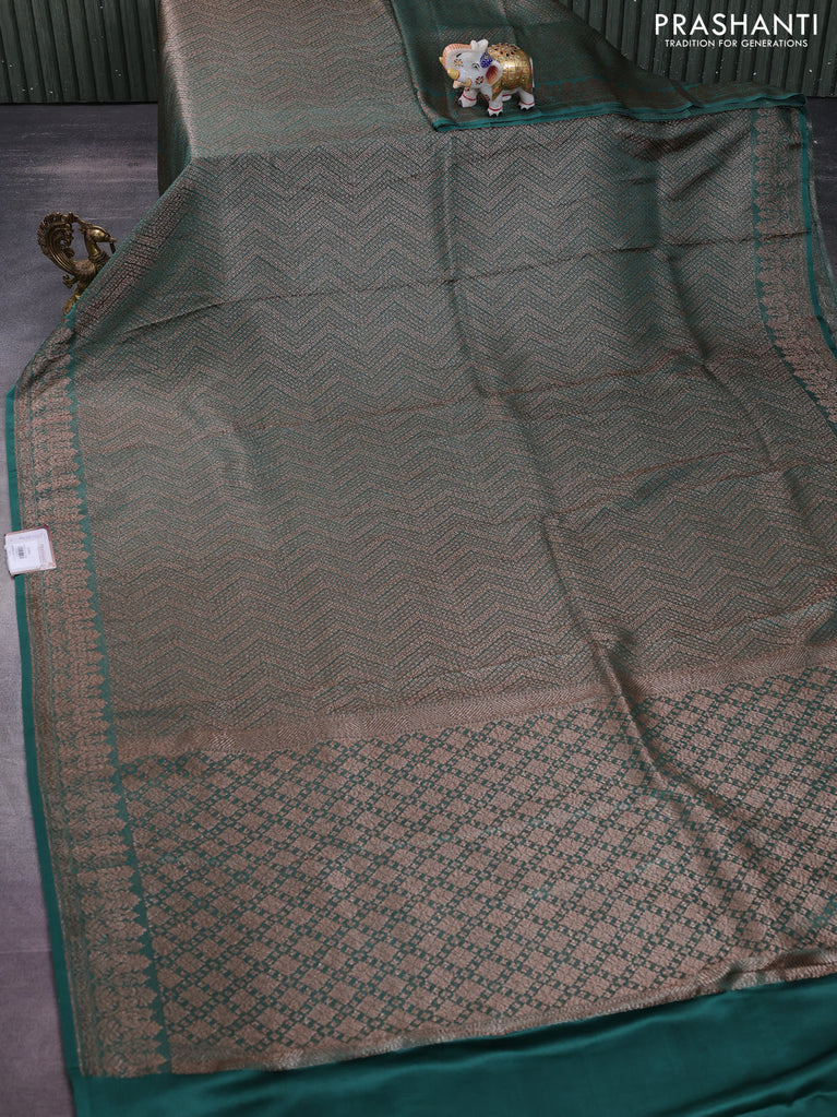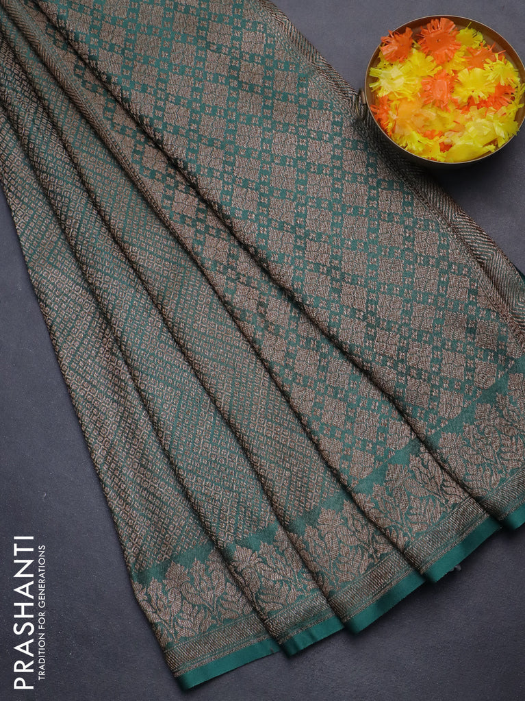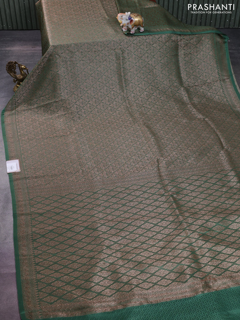 Banarasi semi crepe saree dark green with allover thread & zari woven brocade weaves and woven border