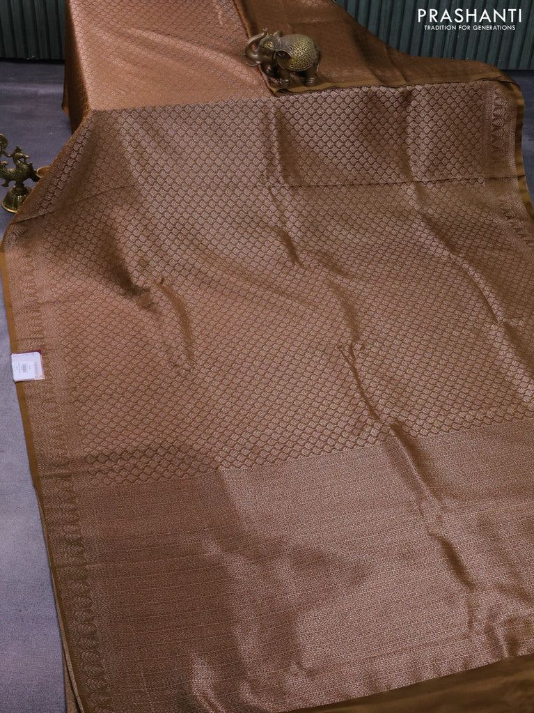 Banarasi semi crepe saree dark mehendi green with allover thread & zari woven brocade weaves and woven border