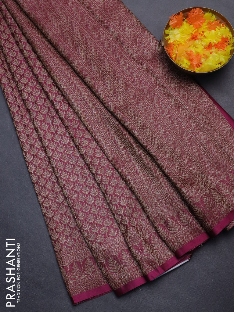 Banarasi semi crepe saree dark magenta pink with allover thread & zari woven brocade weaves and woven border