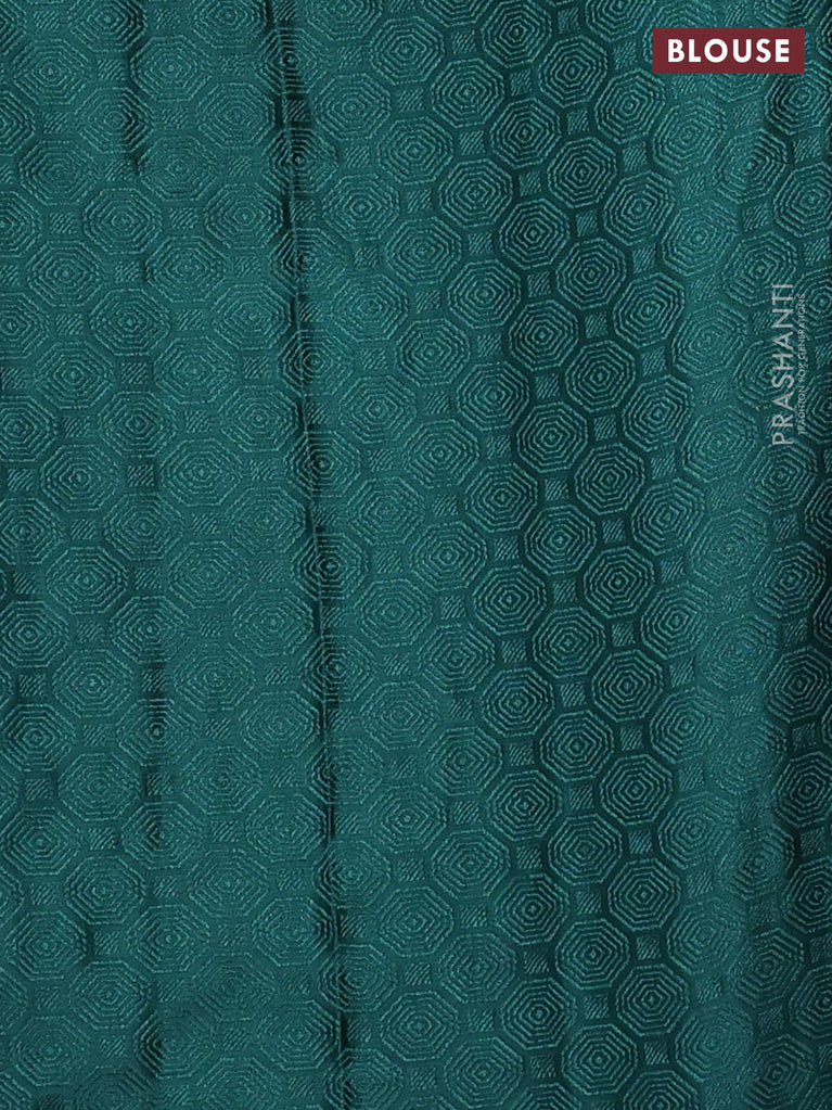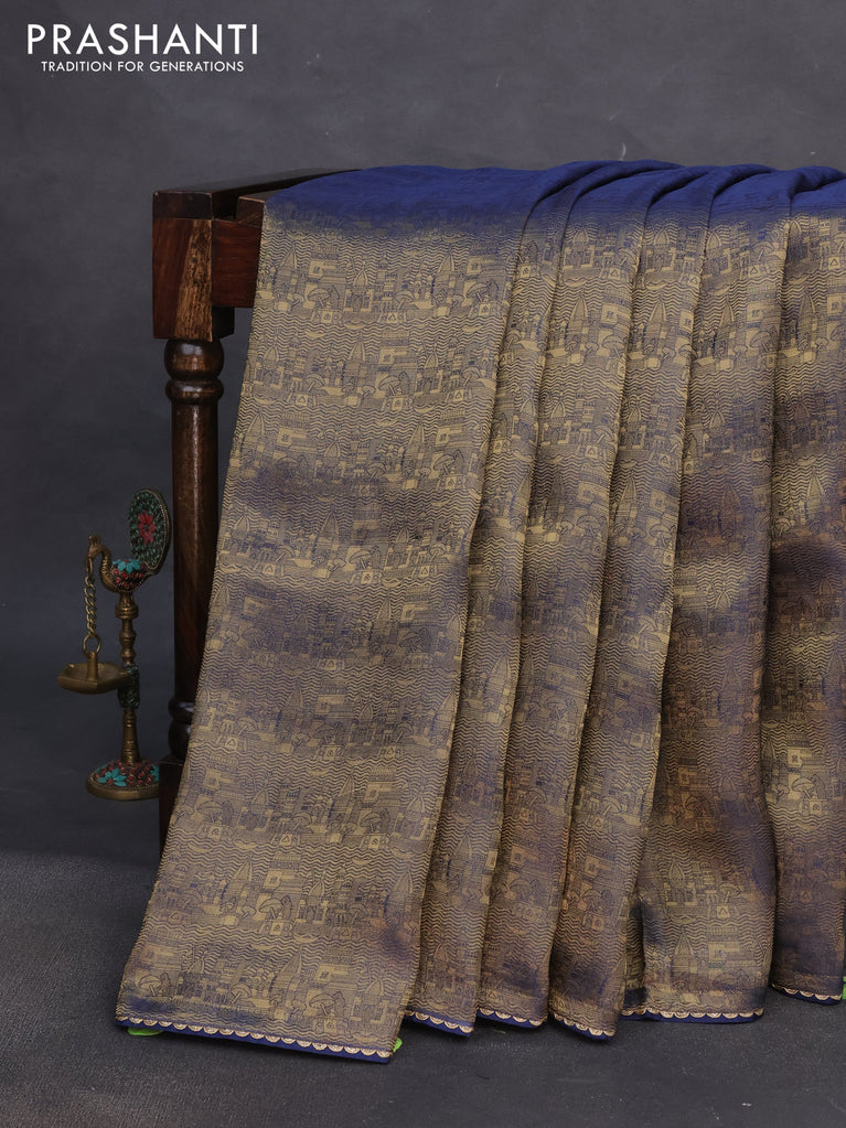 Banarasi semi crepe saree dual shade of peacock blue with allover zari woven brocade weaves and lace work border