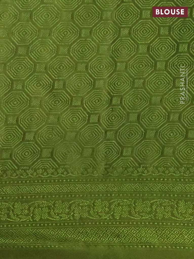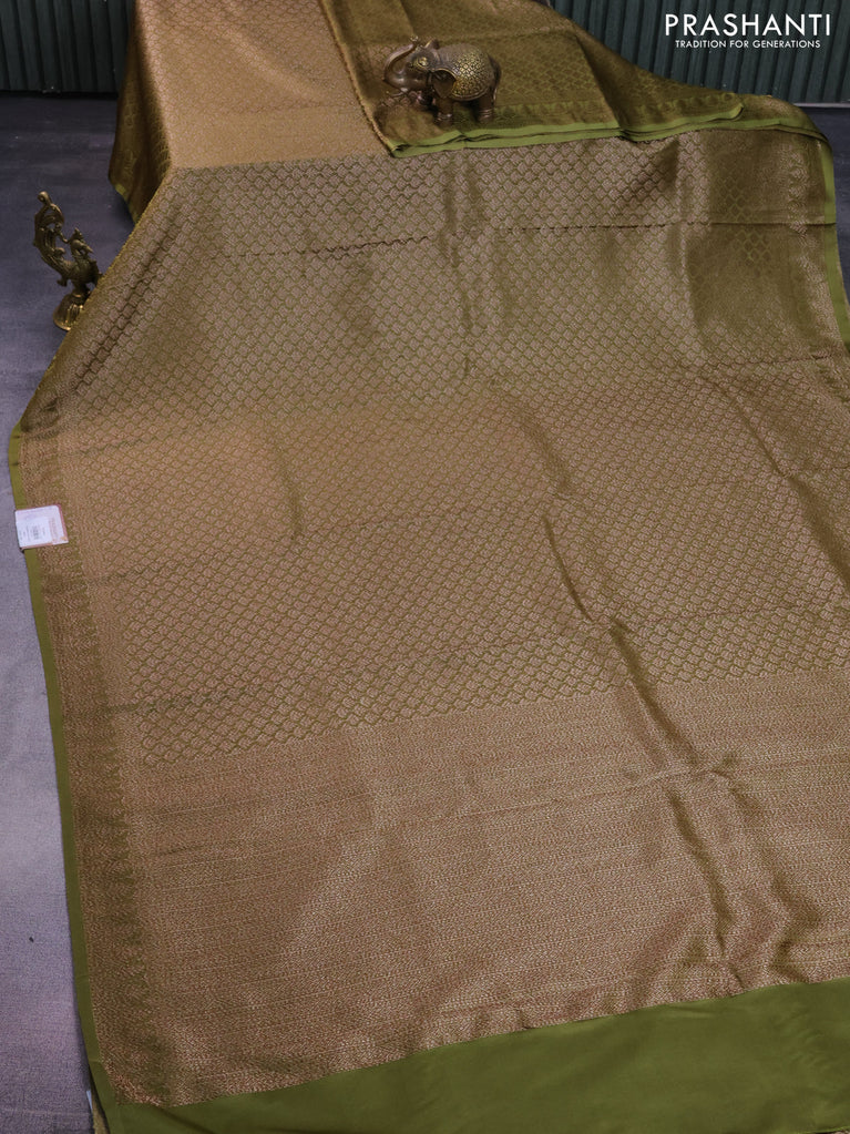 Banarasi semi crepe saree miltary green with allover thread & zari woven brocade weaves and woven border