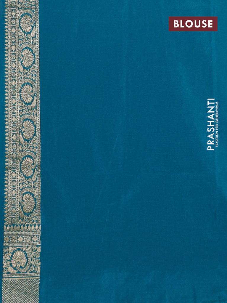 Banarasi semi katan silk saree dual shade of teal bluish green with allover silver & gold zari weaves and zari woven border