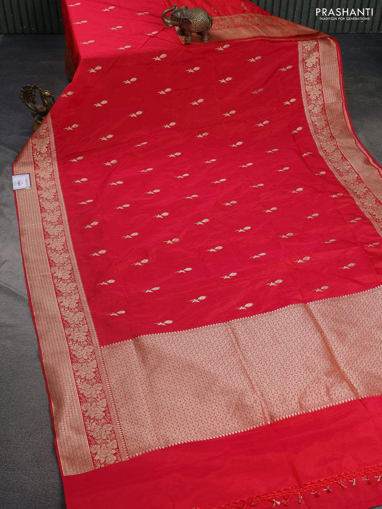 Banarasi semi katan silk saree dual shade of reddish pink with allover zari woven buttas and rich zari woven border