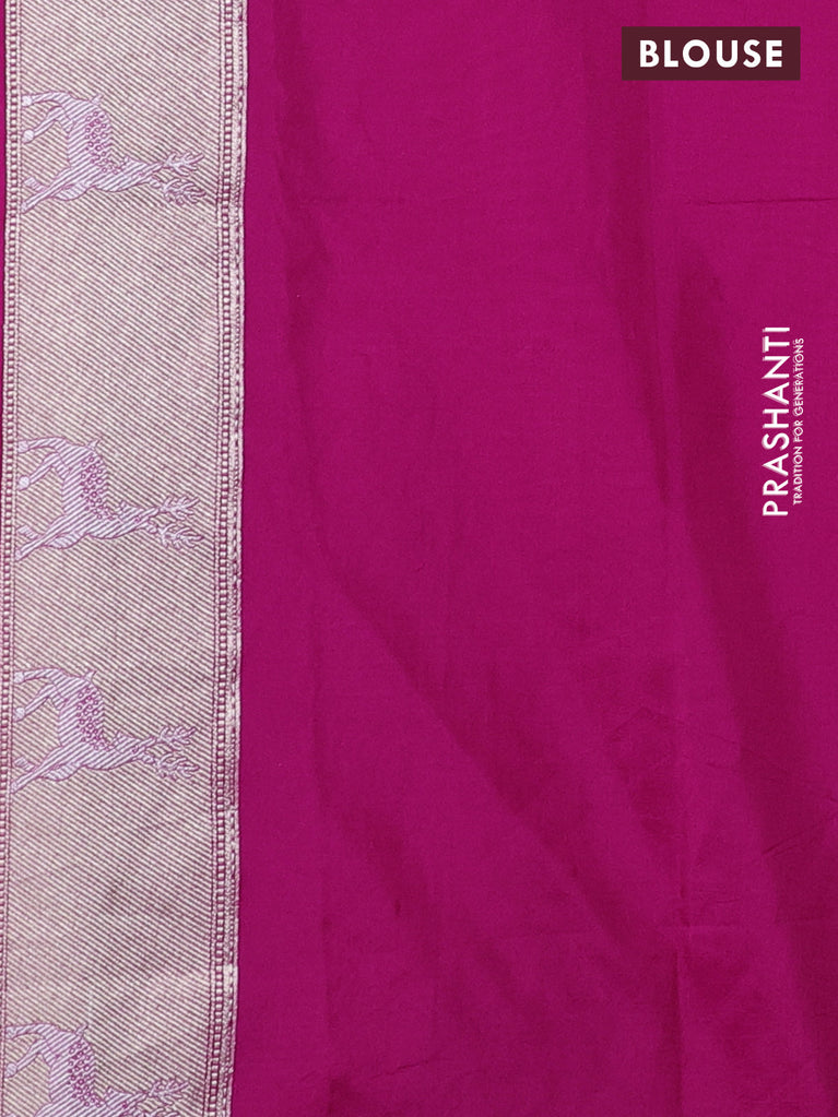 Banarasi semi katan silk saree pink with allover silver & gold zari weaves and deer design zari woven border