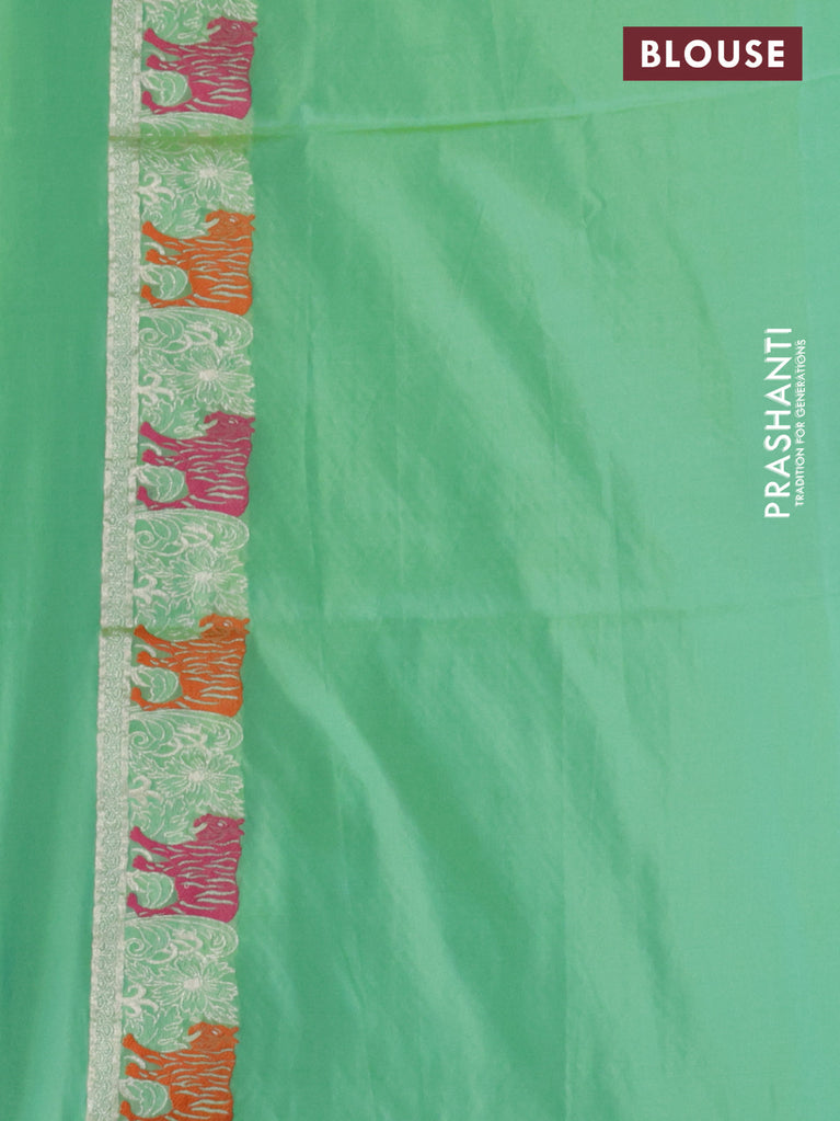 Banarasi semi katan silk saree teal green with silver zari woven buttas and rich zari woven border