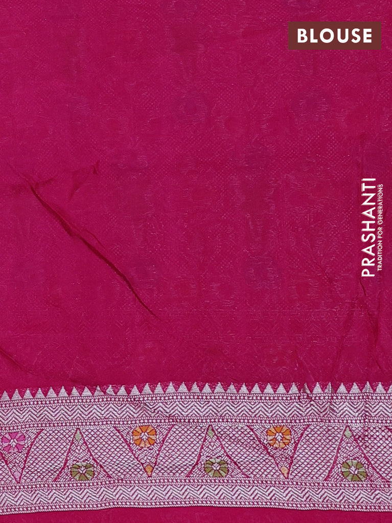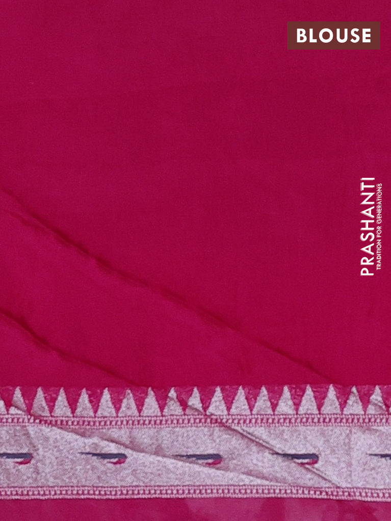 Banarasi semi raw silk saree pink with allover silver zari woven paithani weaves and silver zari woven border