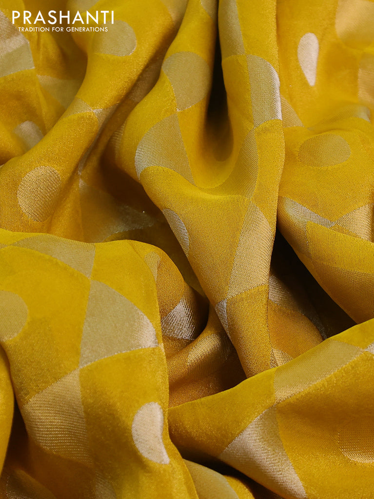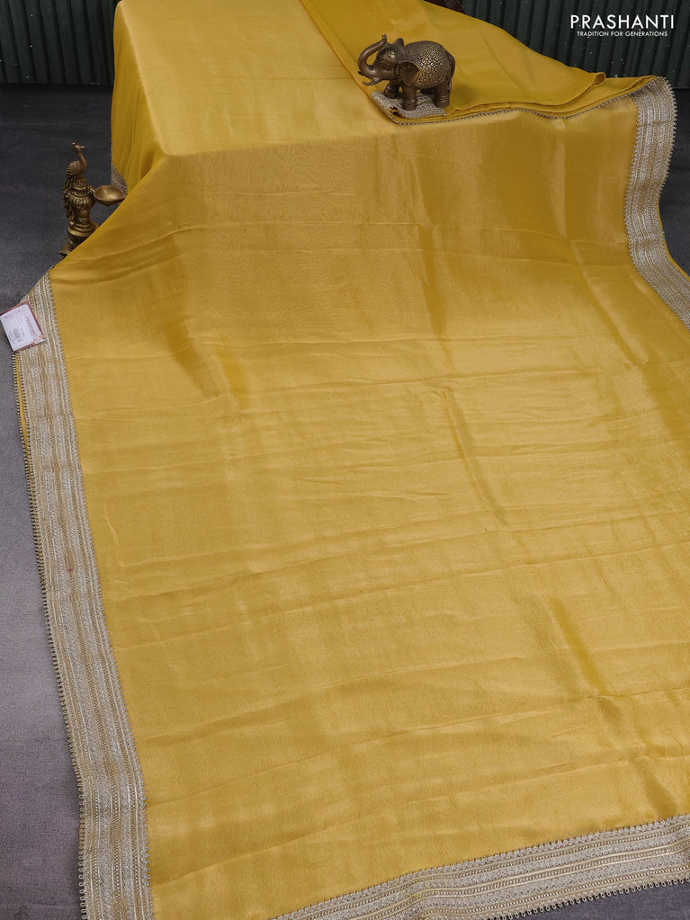 Banarasi tissue saree yellow with plain body and lace work border