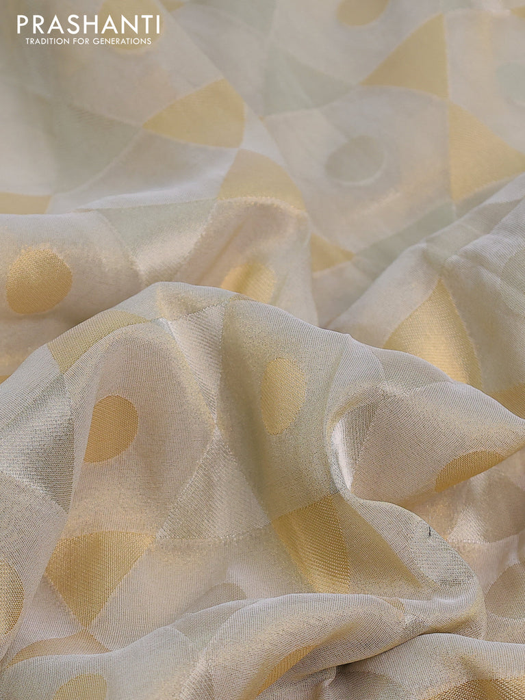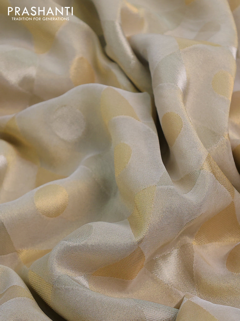 Banarasi tissue saree beige and dark green with allover zari woven geometric wevaes and lace work border