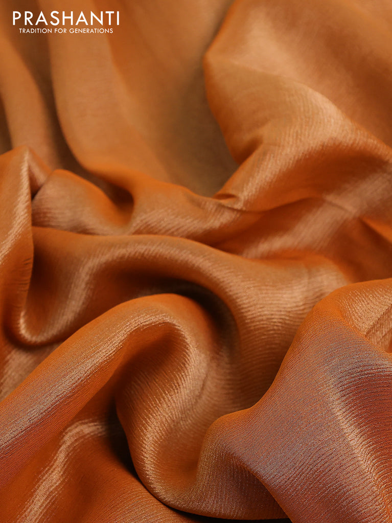 Banarasi tissue saree rust shade and red with plain body and lace work border