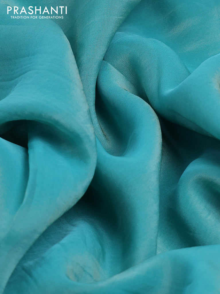 Banarasi tissue saree teal blue with plain body and lace work border