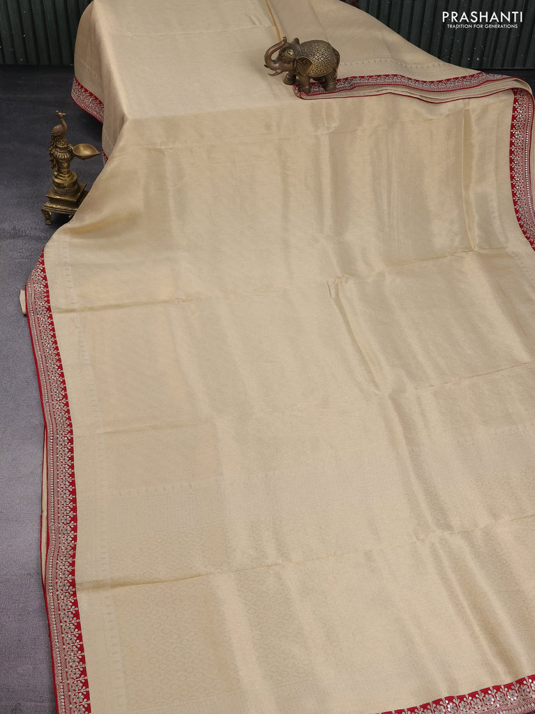 Banarasi tissue saree beige and red with allover zari woven brocade weaves and sequin work border