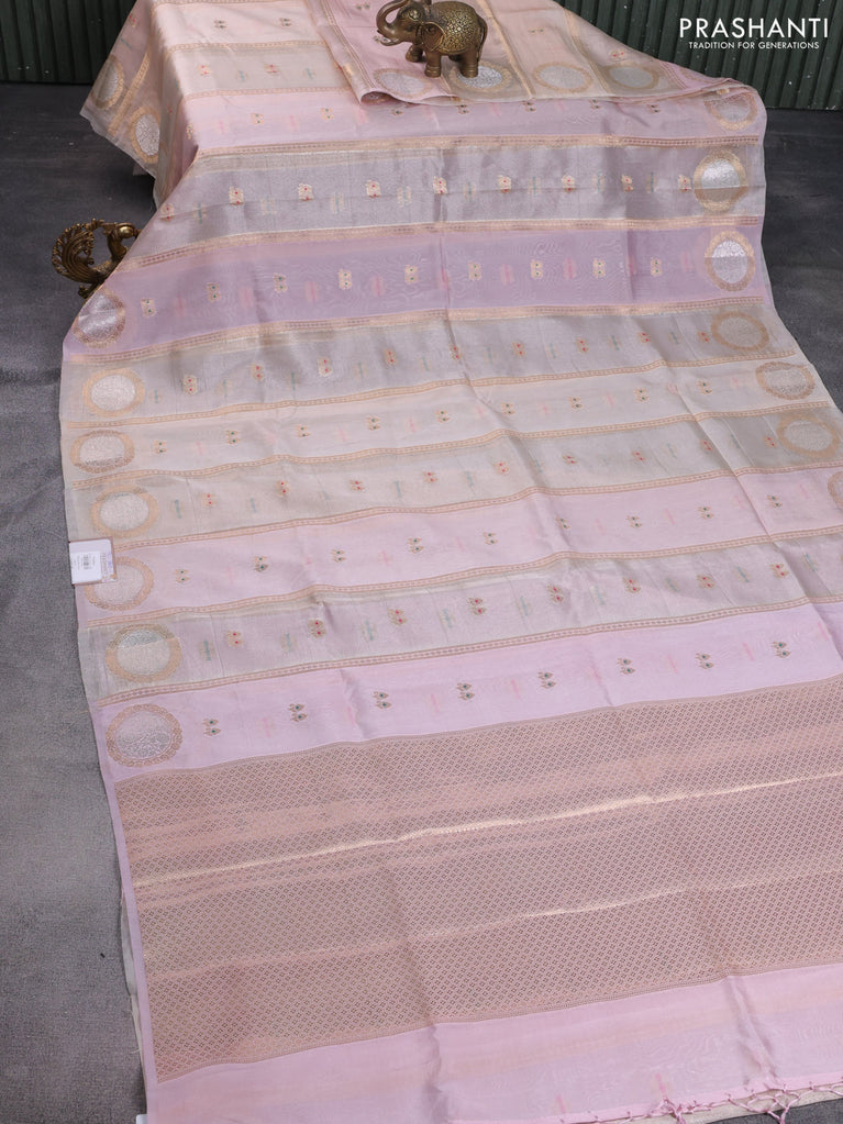 Banarasi tissue semi silk saree beige and baby pink with zari weaves & buttas and zari woven butta border