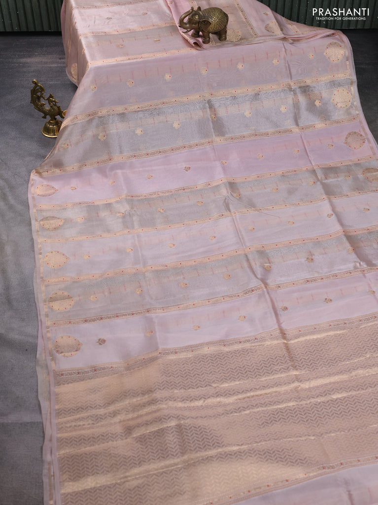 Banarasi tissue semi silk saree baby pink with zari weaves & buttas and zari woven butta border