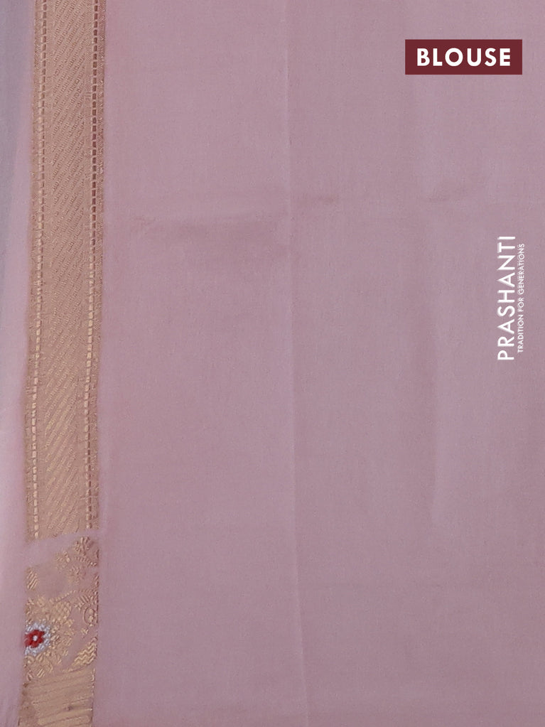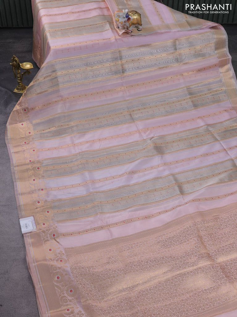 Banarasi tissue semi silk saree baby pink and peach shade with allover zari weaves and zari woven floral border