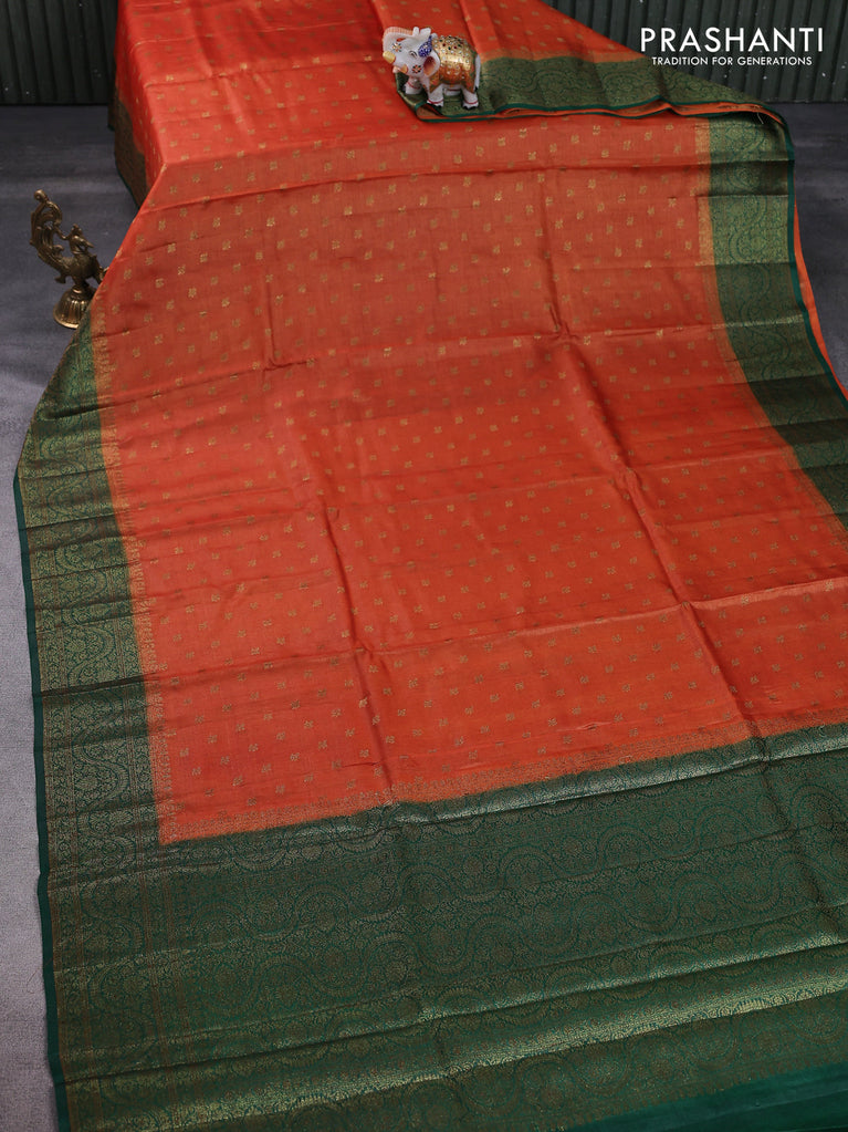 Banarasi tussar silk saree orange and green with thread & zari woven buttas and woven border