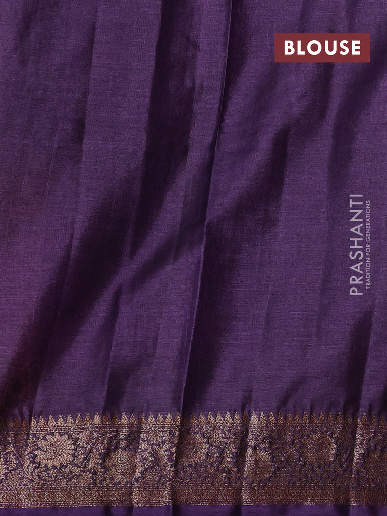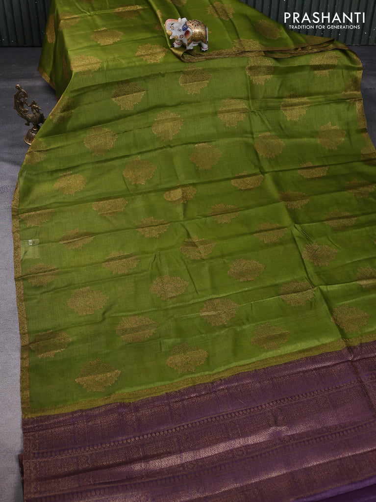 Banarasi tussar silk saree mehendi green and purple with thread & zari woven floral buttas and woven border