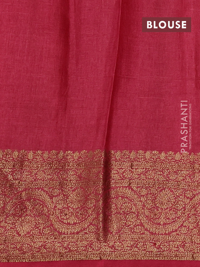 Banarasi tussar silk saree maroon and magenta pink with zari woven buttas and zari woven floral digital printed border