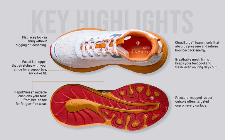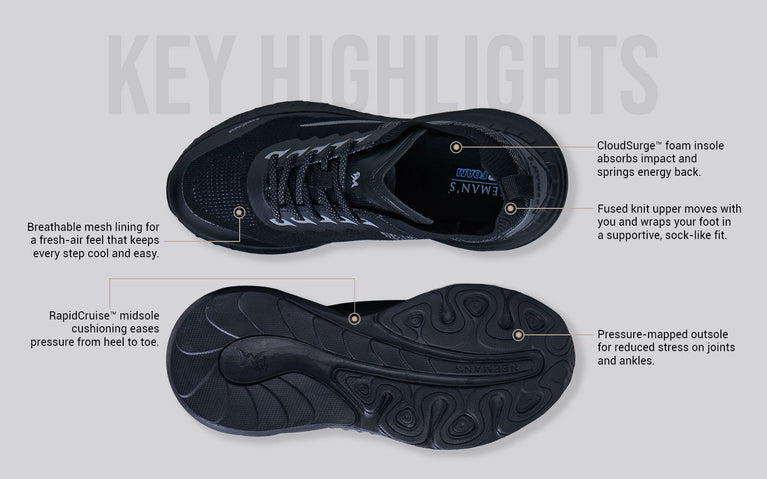 Begin Walk Pulse isn’t just built for comfort - it’s built to show up. With RapidCruise™ cushioning, energy-return tech, and pressure-mapped support, this pair turns morning strides into main character moments. Whether you’re clocking miles or just clocking glances, Pulse makes sure you’re walking with purpose - and presence.