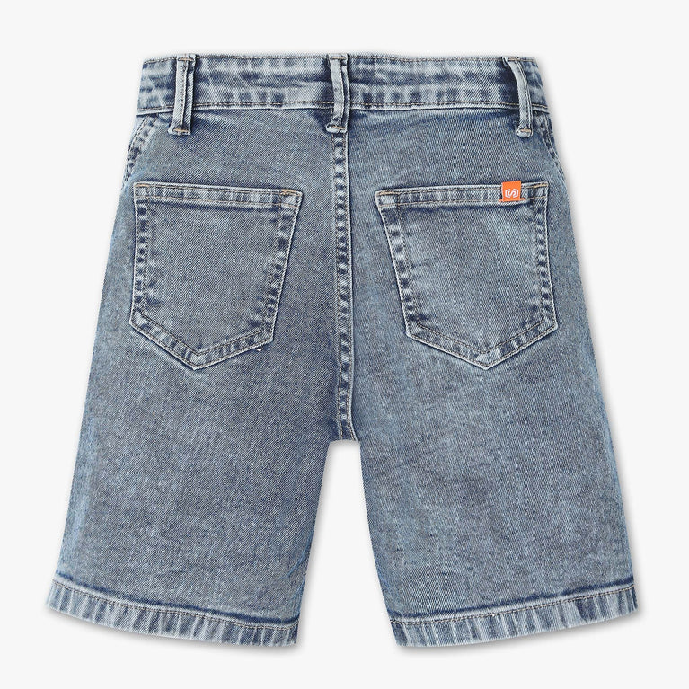 Below Knee Length Stretchable Denim Shorts With Front Cut And Sew