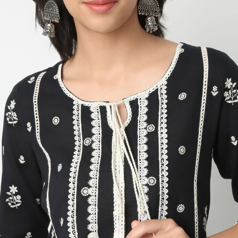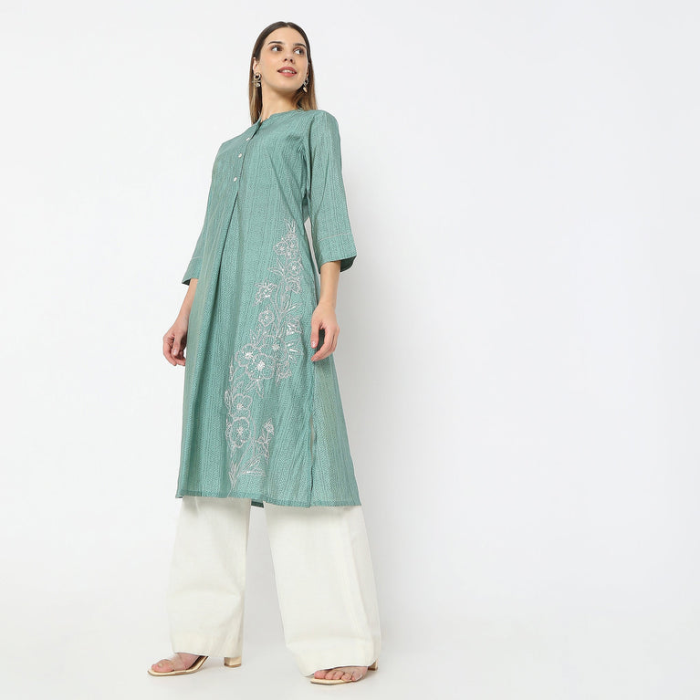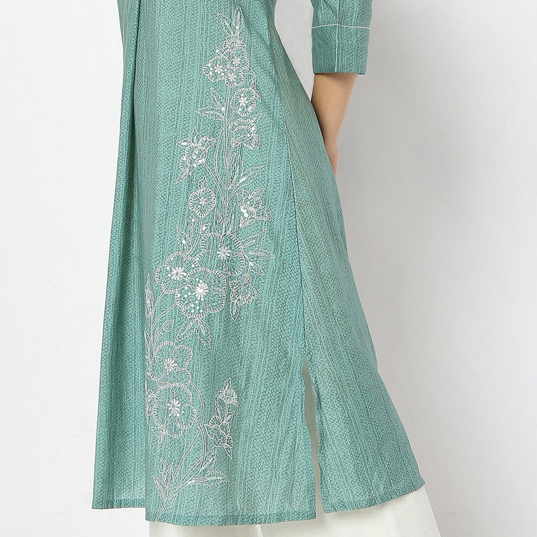 Below Knee Three-Fourth Sleeve Straight Fit Embroidered Kurta