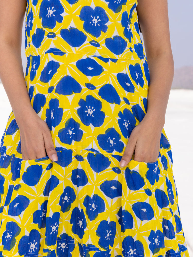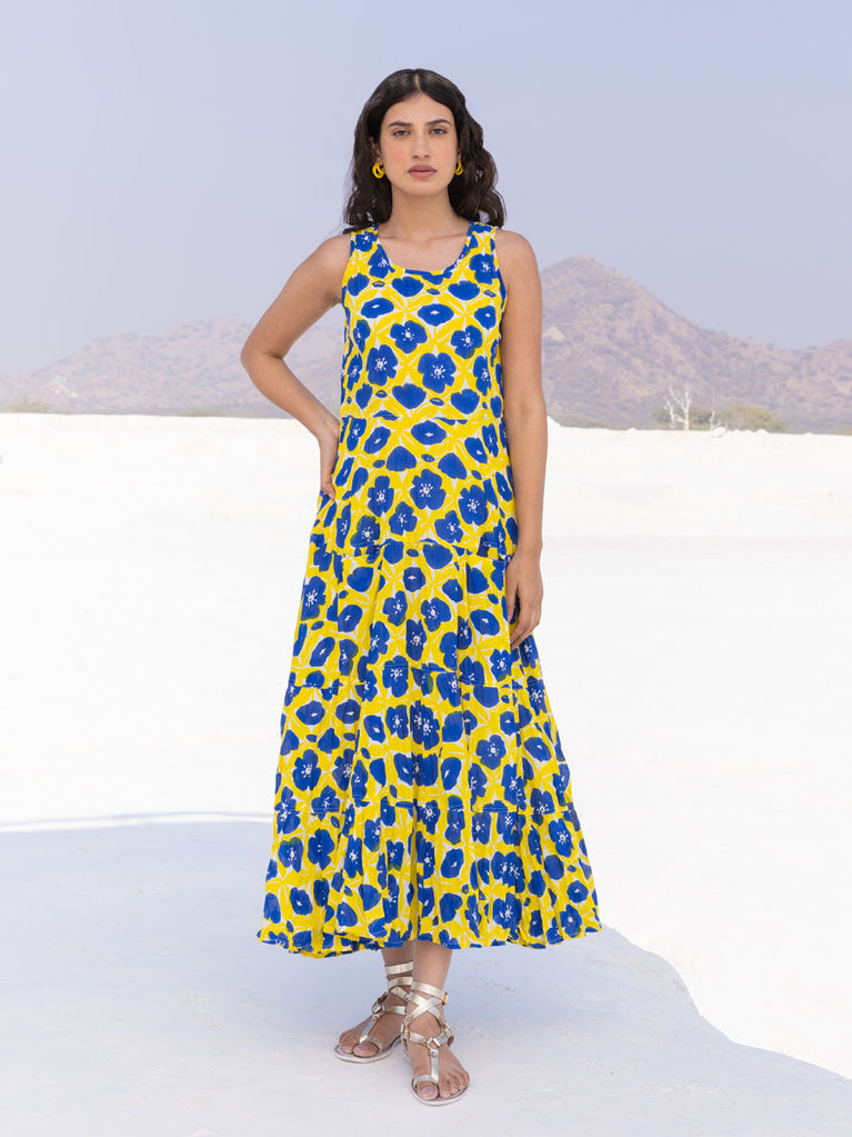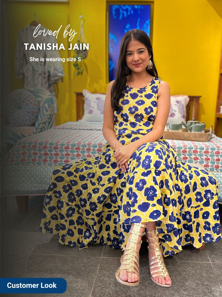 Below Knee Flare Fit Tiered Jaipuri Printed Kurta