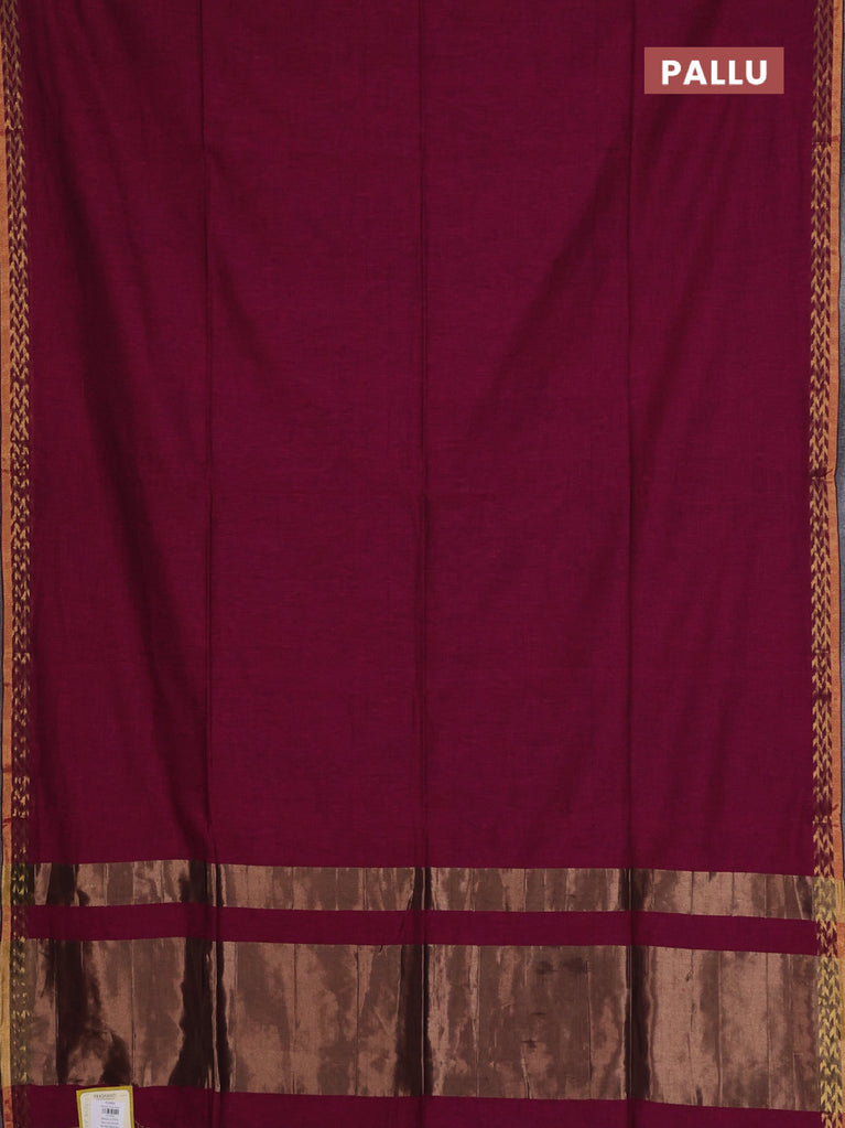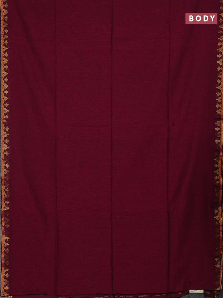 Bengal soft cotton saree dark magenta pink and maroon with plain body and zari woven border