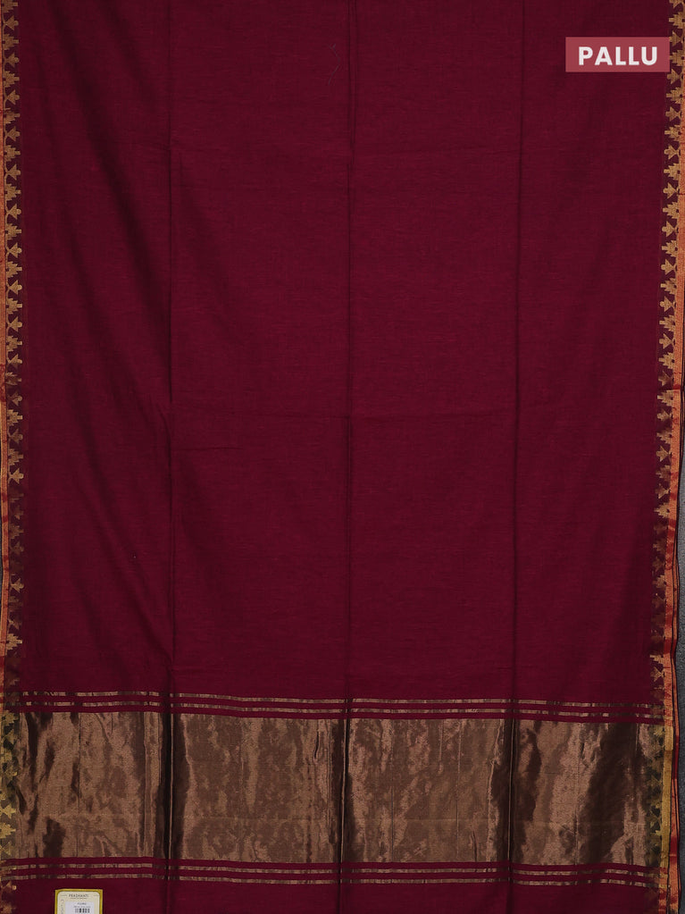 Bengal soft cotton saree dark green and deep maroon with plain body and zari woven border
