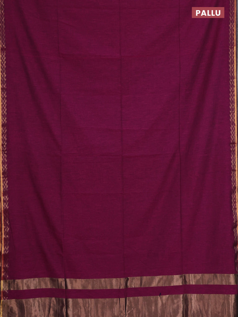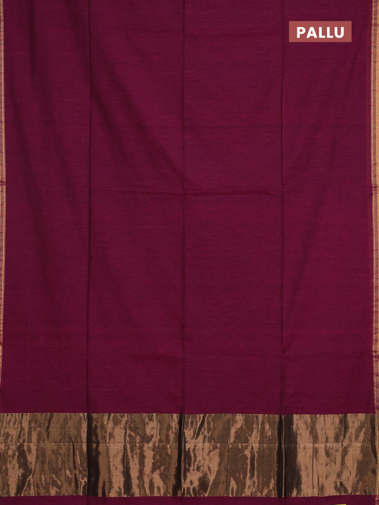 Bengal soft cotton saree dark magenta pink and violet with plain body and zari woven border