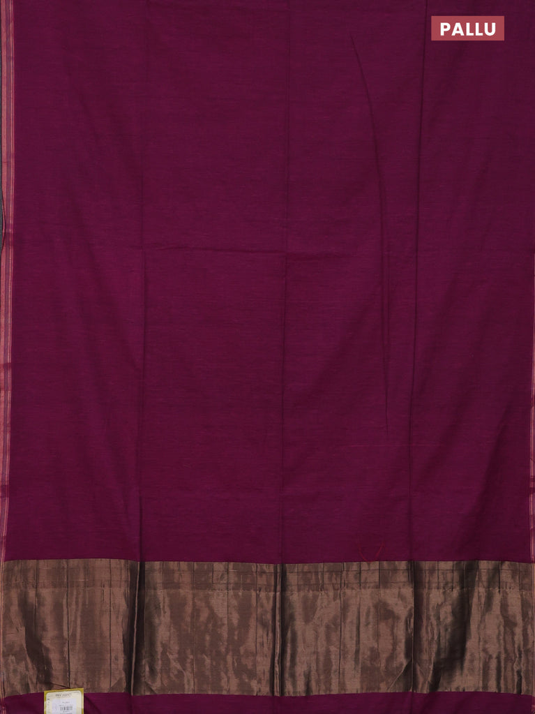 Bengal soft cotton saree dark magenta pink and green with plain body and zari woven border