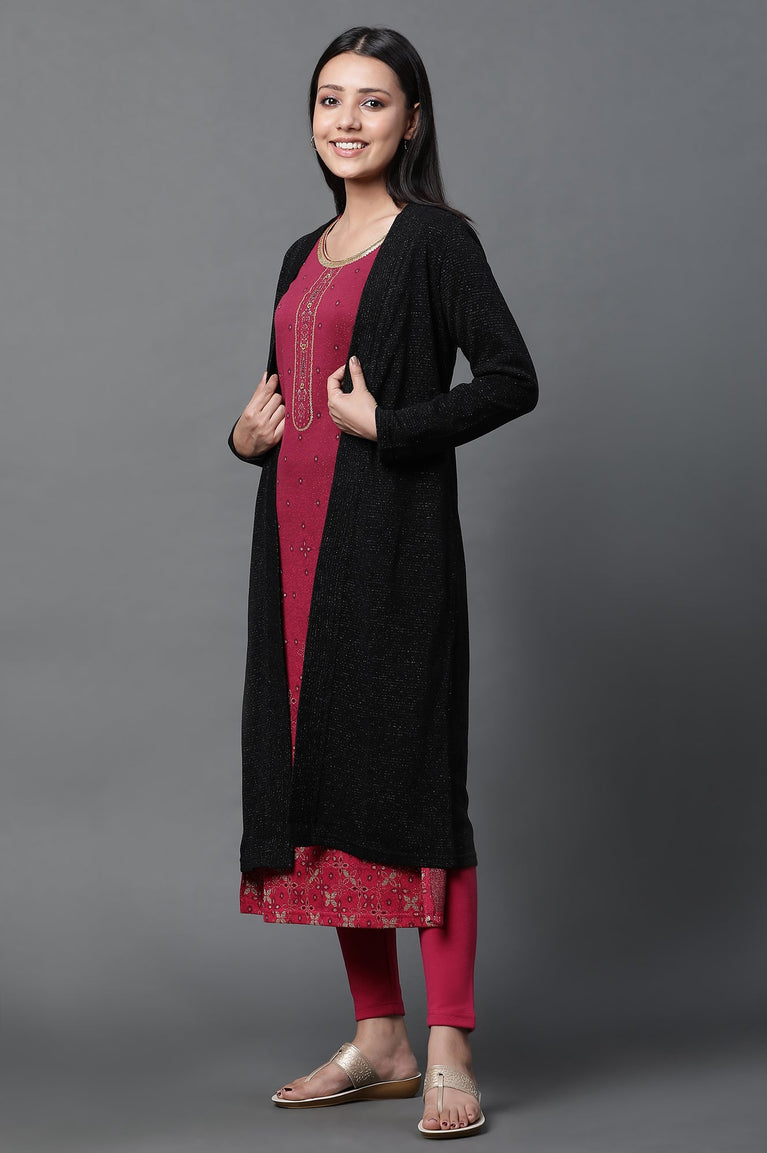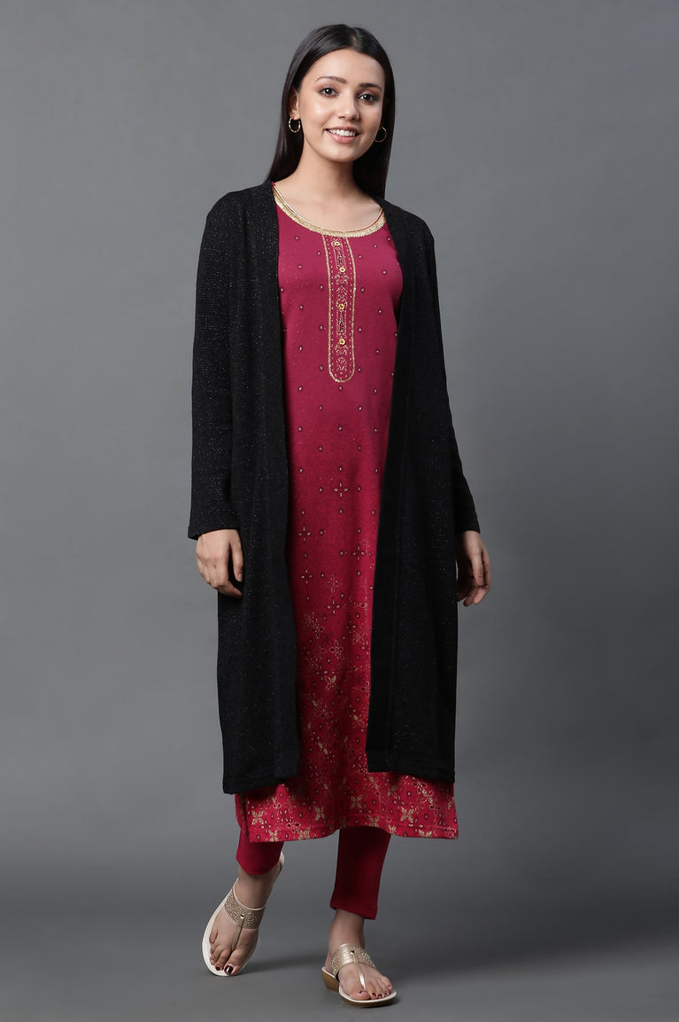 Weave a all new style story this winter with this black and white round neck full sleeve kurta.