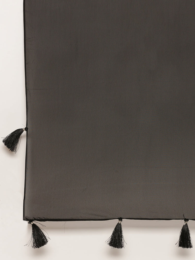 Black Foil Printed Embellished Straight Kurta, Pleated Palazzo and Dupatta Set