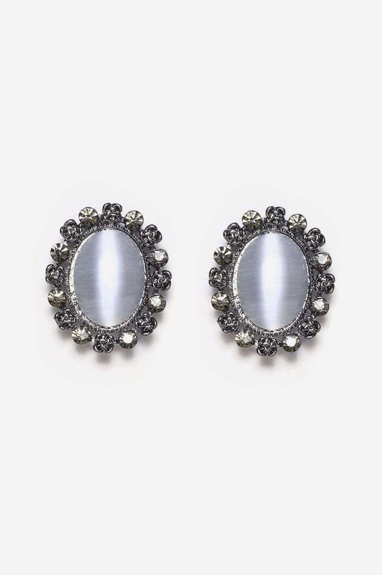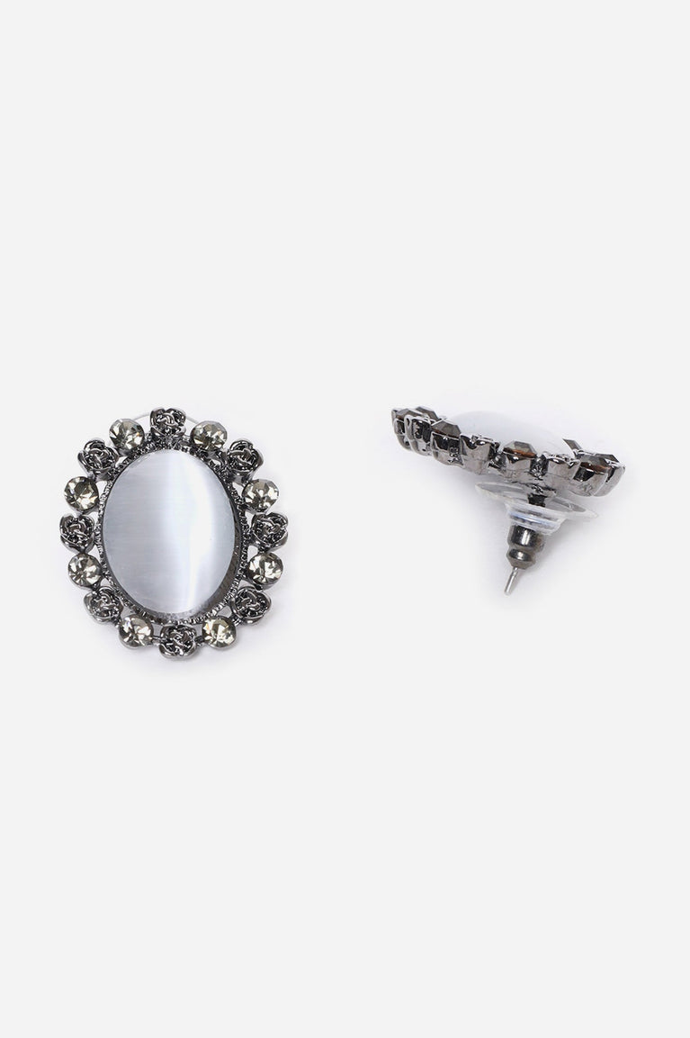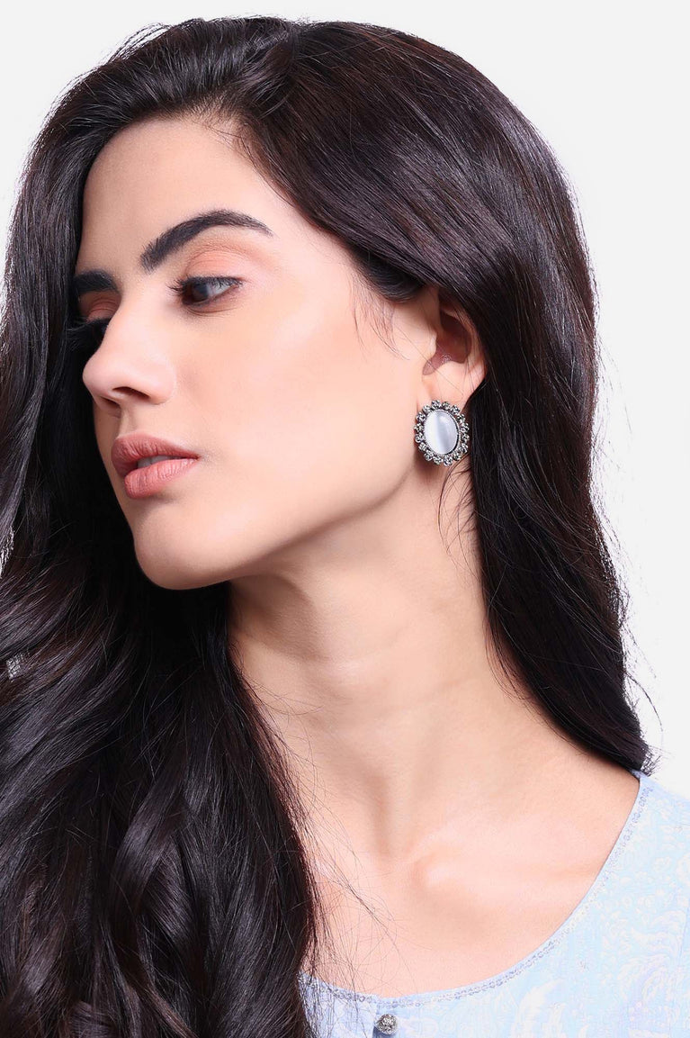 Grey Agate Moonstone Color Stud Earrings