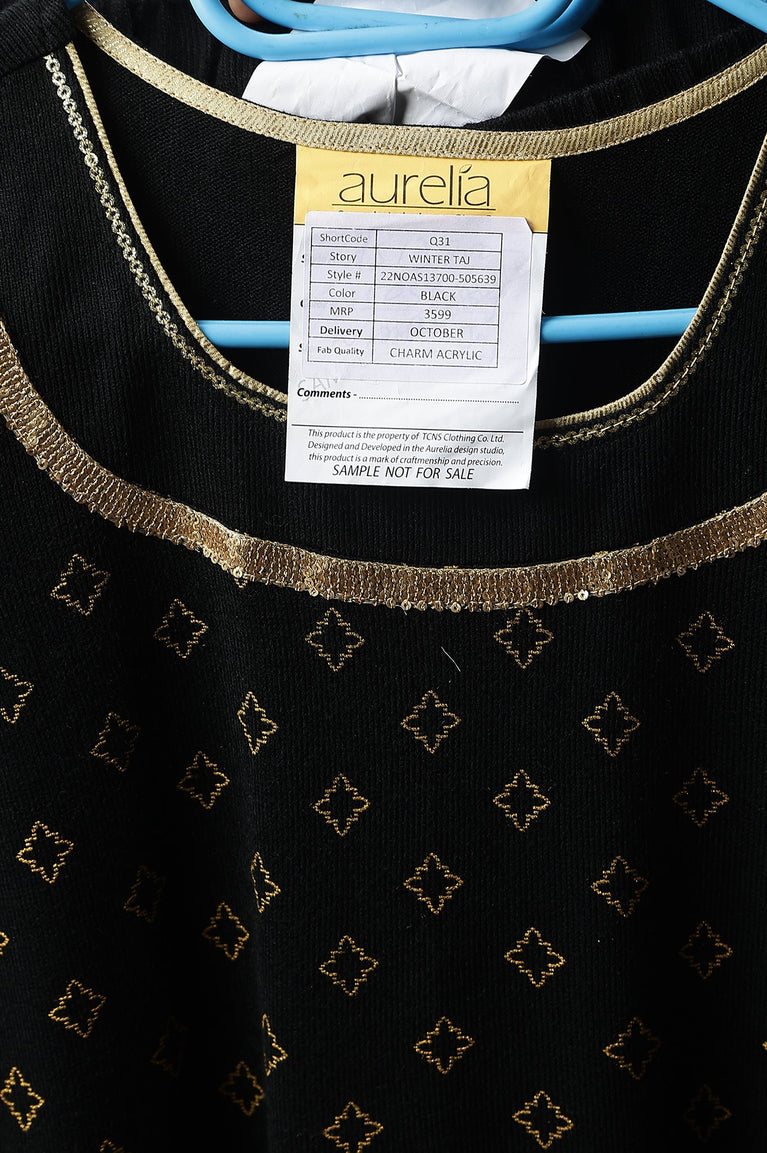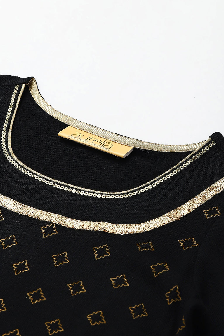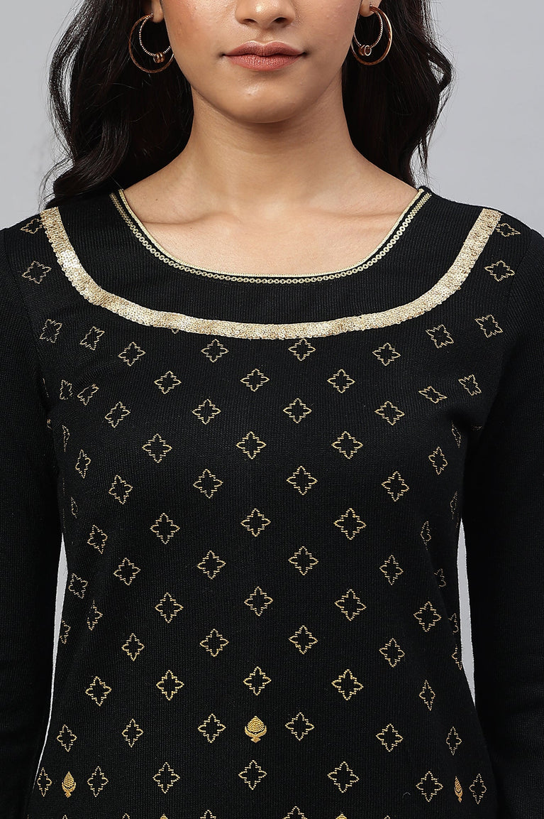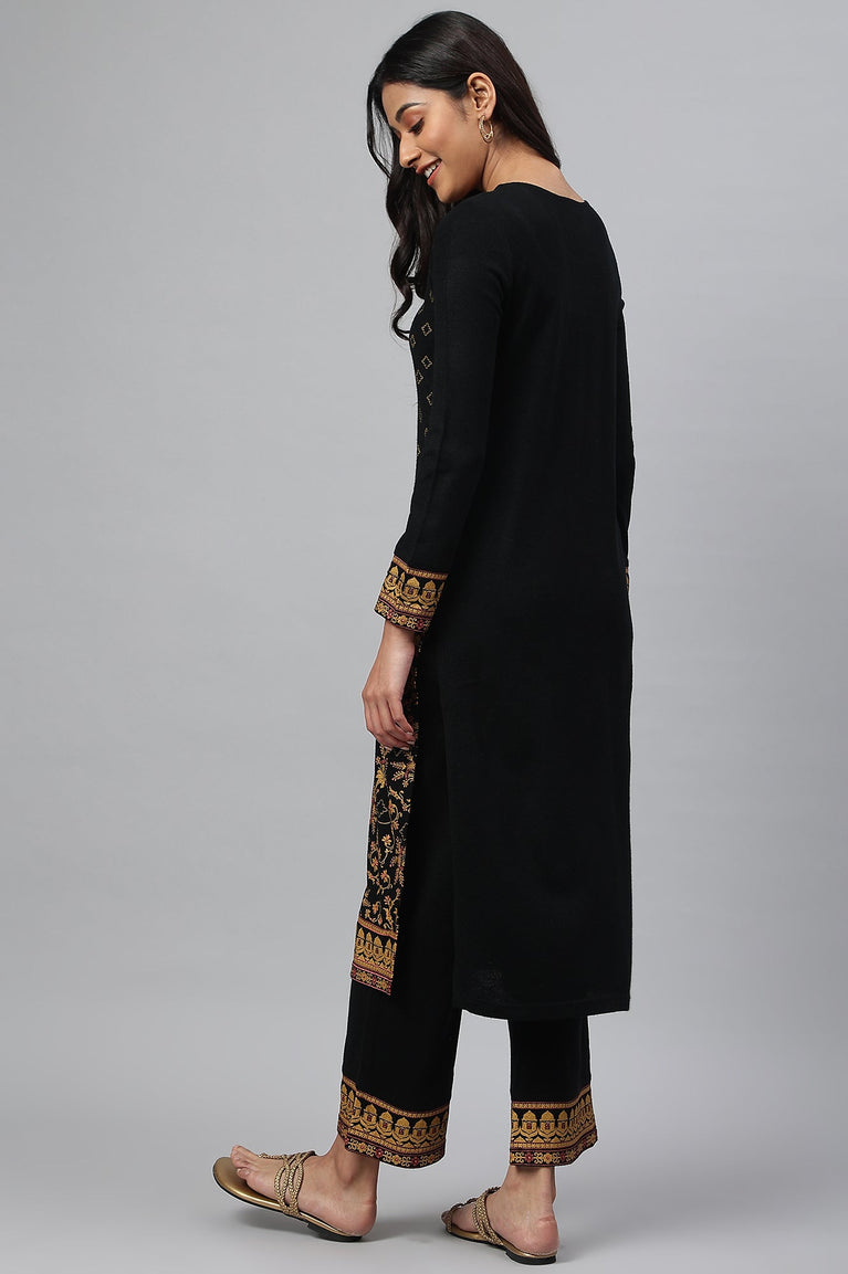 Black Gold Printed Festive Winter kurta and Pants Set