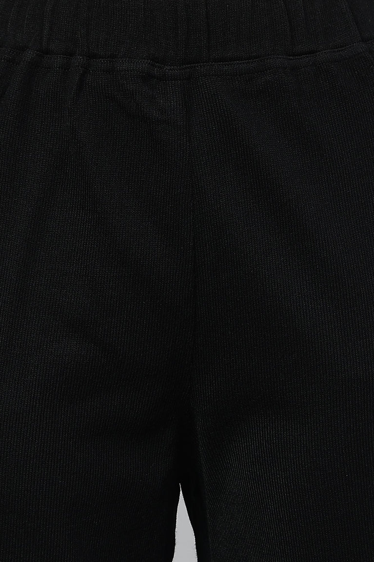 Black Jacquard Festive Winter Kurta and Tights Set